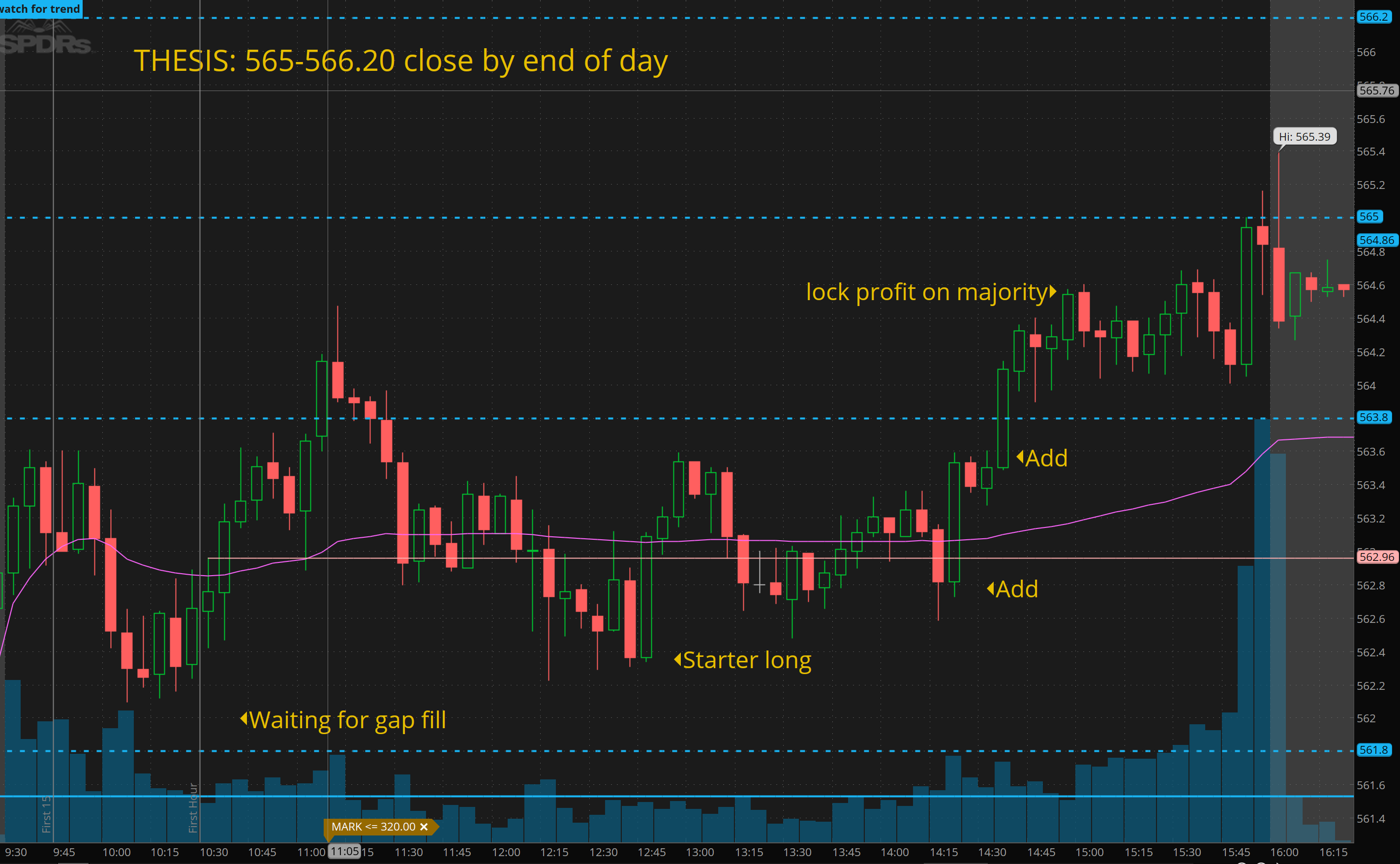 Since we had the failed breakdown reversal I was looking for 565-566 to be tested. Over 565 I want to start a swing short ideally on gap up reversal today, but market dumped before I could get positioned.