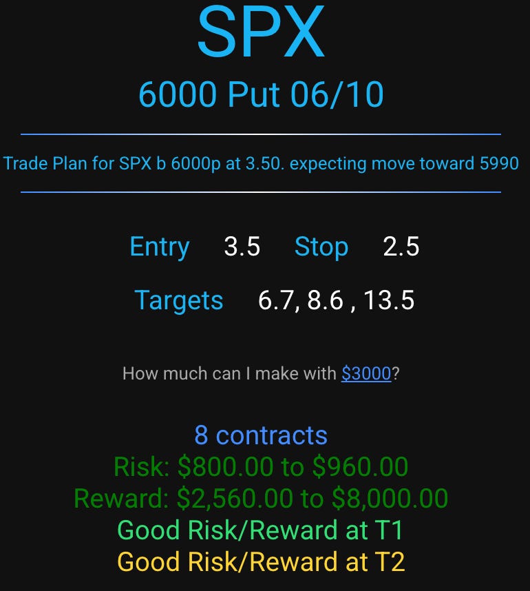 During consolidation 6000p dropped back to 2.50-3 and the on vwap break, hit every target from the Trade Planner! Edge T3 was 13.5 while SPX spiked to 13.6!!! Amazing!!!