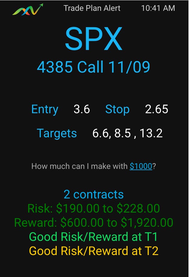 I though we were in the clear and going to go higher but I saw some interesting put flow around lunch that had me consider hedging. I like the 4370p for 1.60 to 2. I wasn’t convinced of the drop so didn’t mention it in chat. However I did see action in NVDA after hitting 4382 that had me share I am going short in it. Here was the signal.