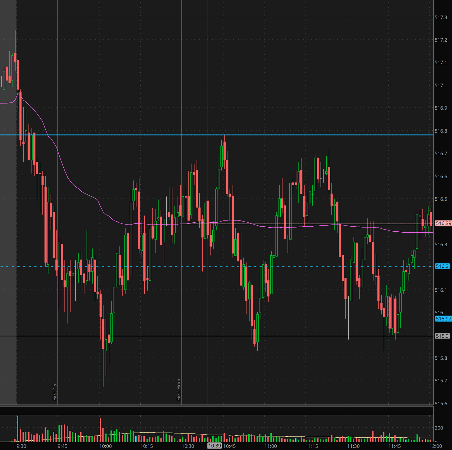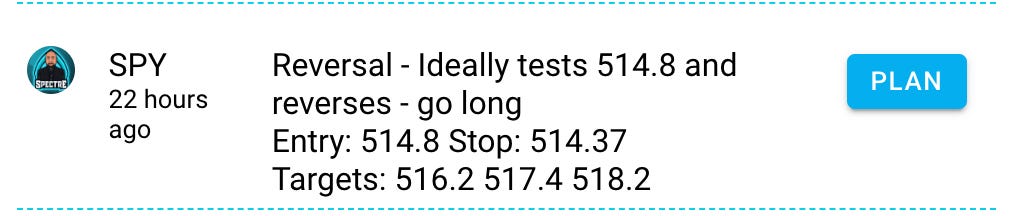 We can control when the market does it’s thing, but if you waited and caught the long on the level, SPY hit 518.20 this morning in premarket.