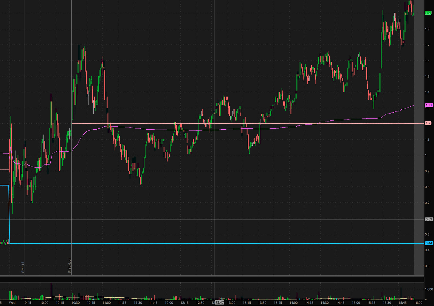 Notice how the dips/low price coincide with vwap. Patience will give you great entries and let you get much better yield for your money than chasing!