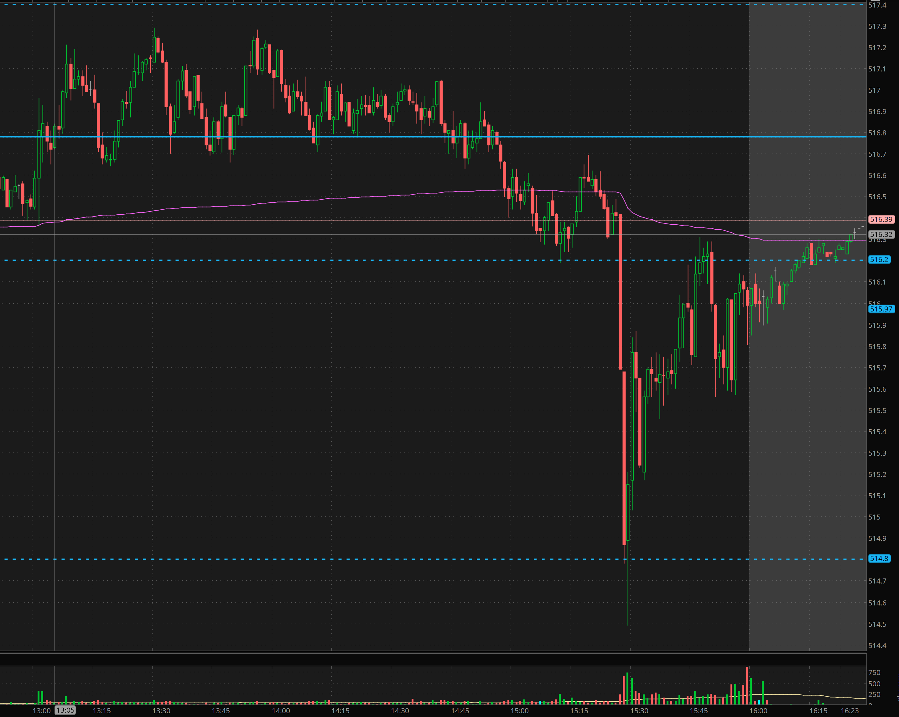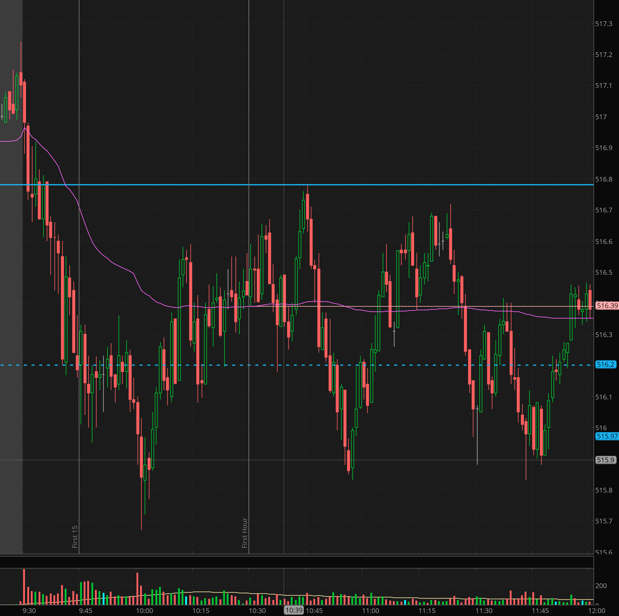 The afternoon session gave a nice push and failed breakout leading to a fast dump on 516.20 break leading to the 514.80 dip buy I had wanted and originally shared as a plan yesterday morning.