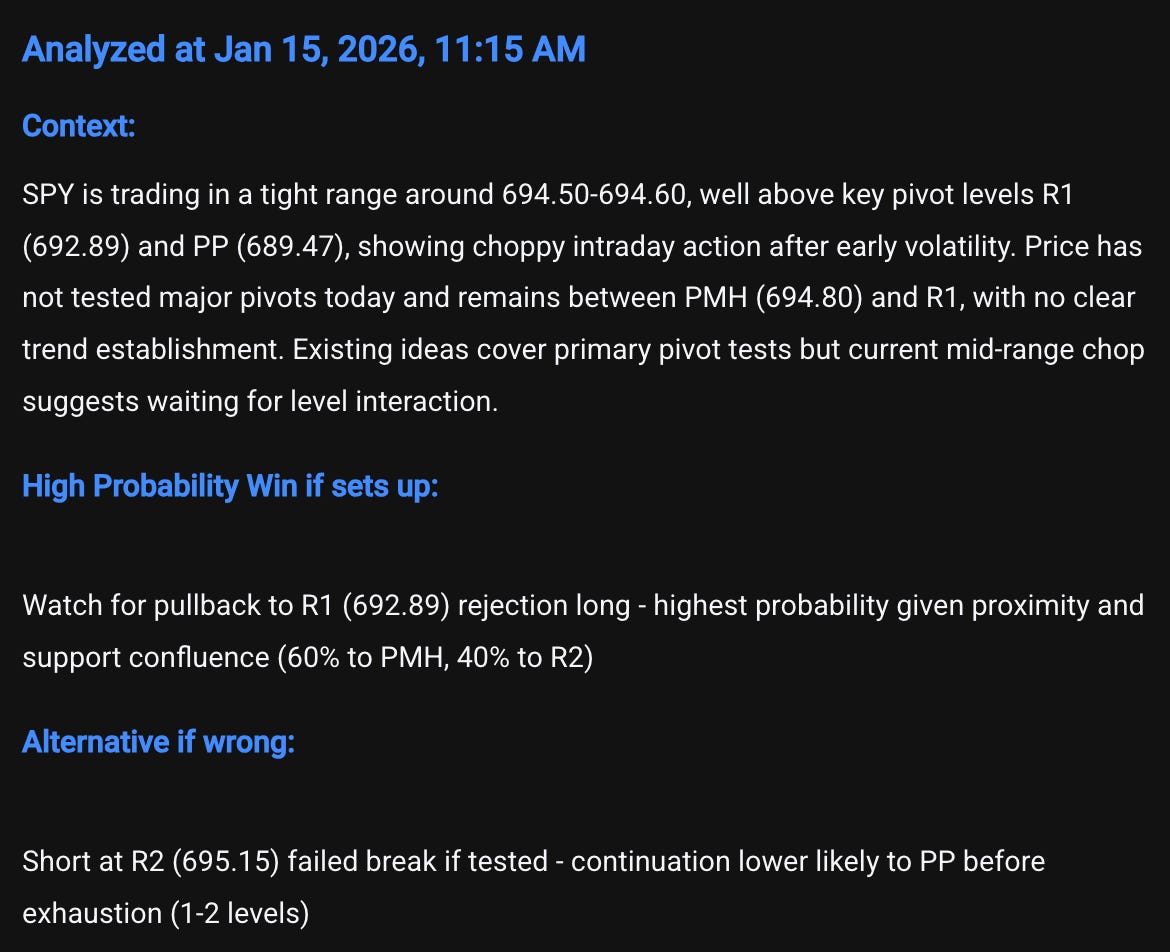 Spectre AI analysis nailed it again! The primary idea didn’t develop at 693 for a long but the Alternative idea for a short at 695.15 did!