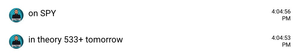 Based on the close and reclaim of vwap. I told THT PRO members I expect to see 533 tomorrow. This is all in alignment with the bear trap and go thesis using the reclaim of 529.50 as the trigger.