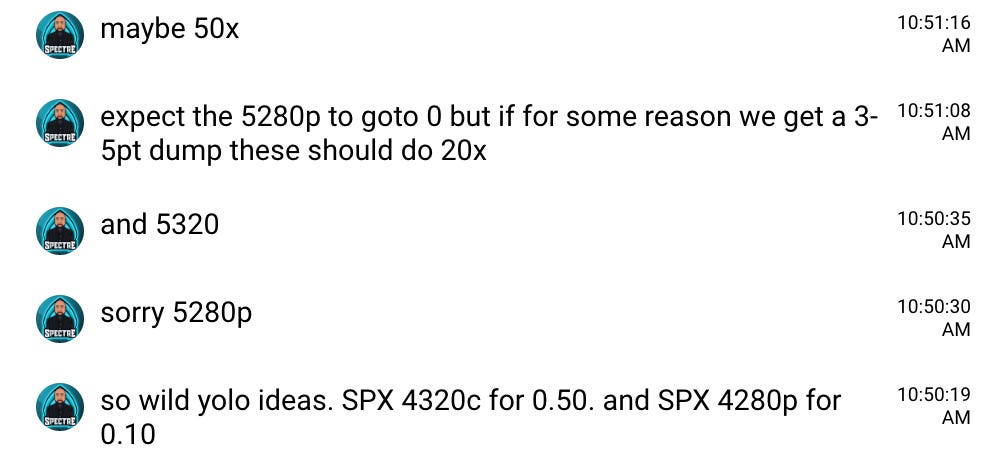 May 22 - SPX 5280p $0.10 —> ($1000 —> $43000 potential)