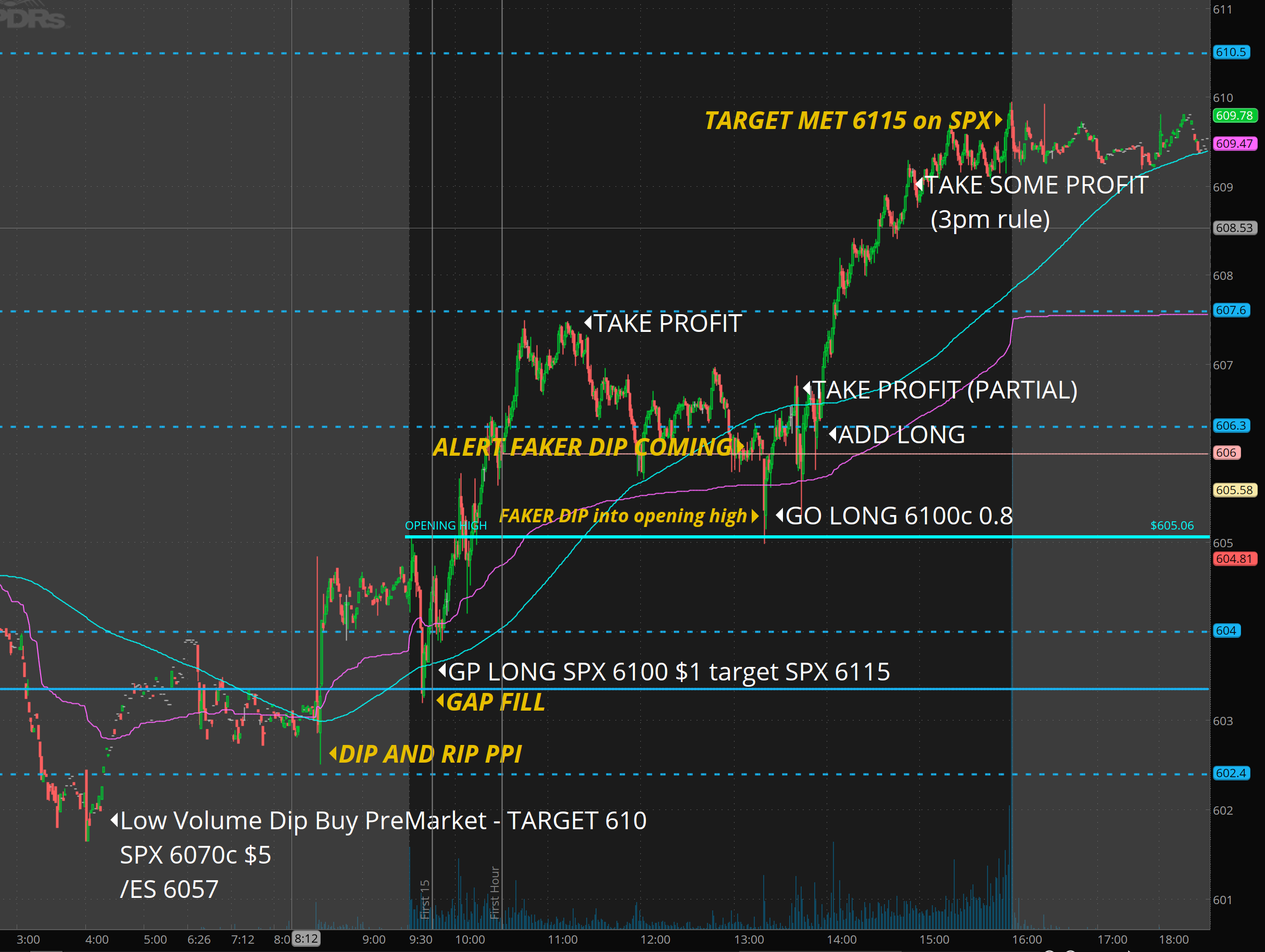 Here is how I “created” my luck. I fully expected a faker dip was coming based on the price action. Practice and experience. Let me alert and target SPX 6100c for 0.80 while it had been basing at 2-2.50 for 90minutes. I also set the sell orders in advance often selling into the spikes (edge generated targets often happen to correlate)