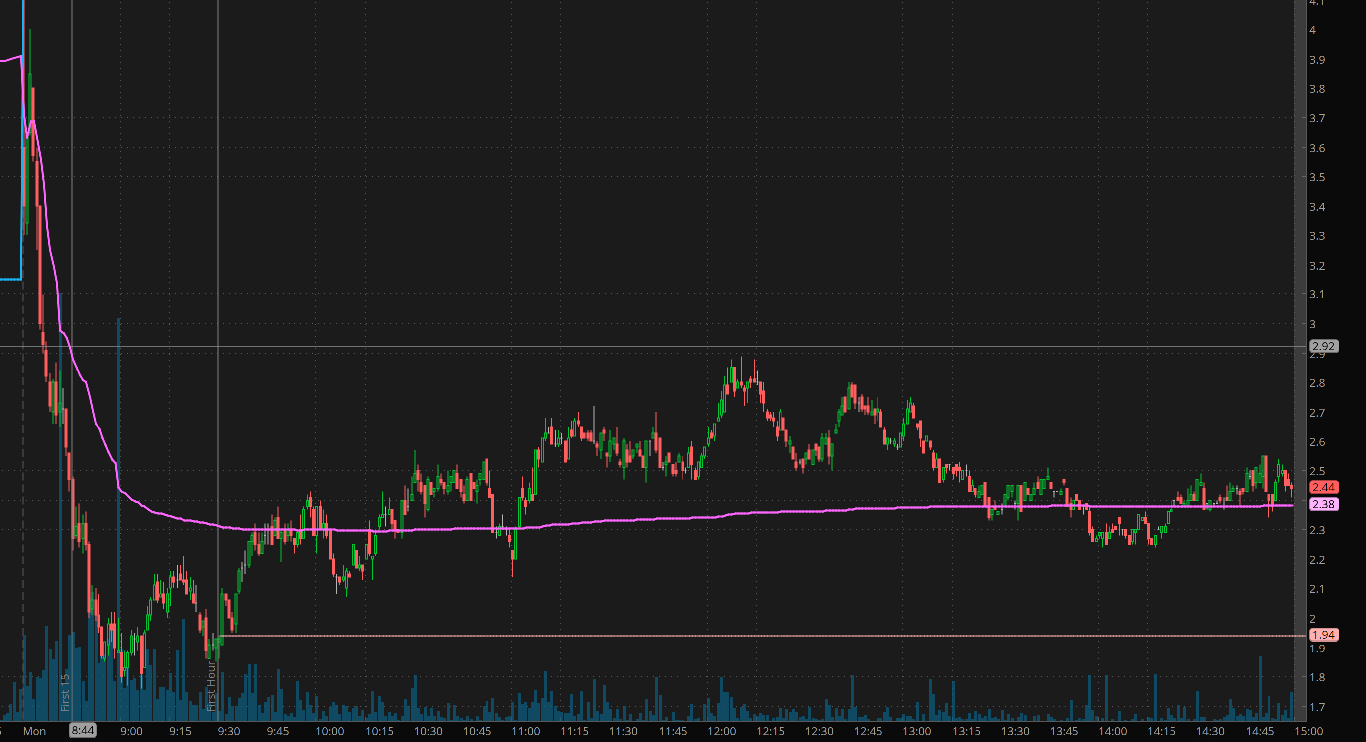 So when I saw them buying at 2.20, I started hawking for an entry near 1.90 with a 1.70 stop. I shared the plan with sell targets of 2.6 and 2.9 and sure enough we got to 2.6 and missed 2.9 by a penny.