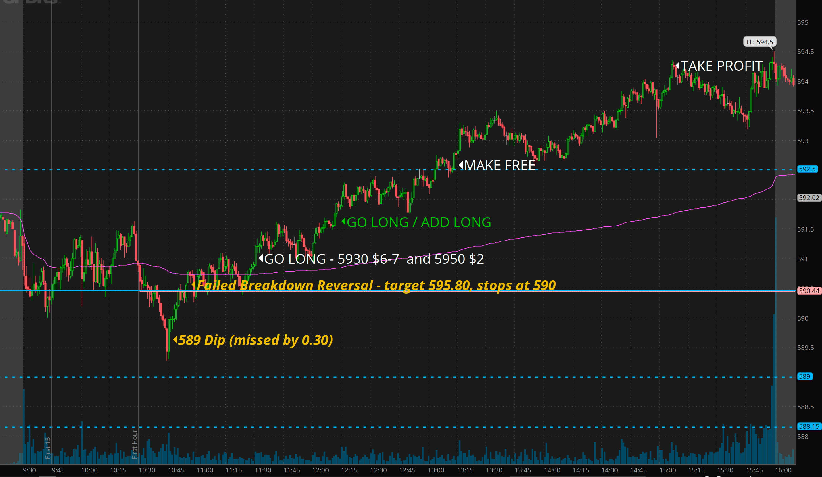 This morning I wrote I wanted to long off 589 or over 592 .. a net bullish bias