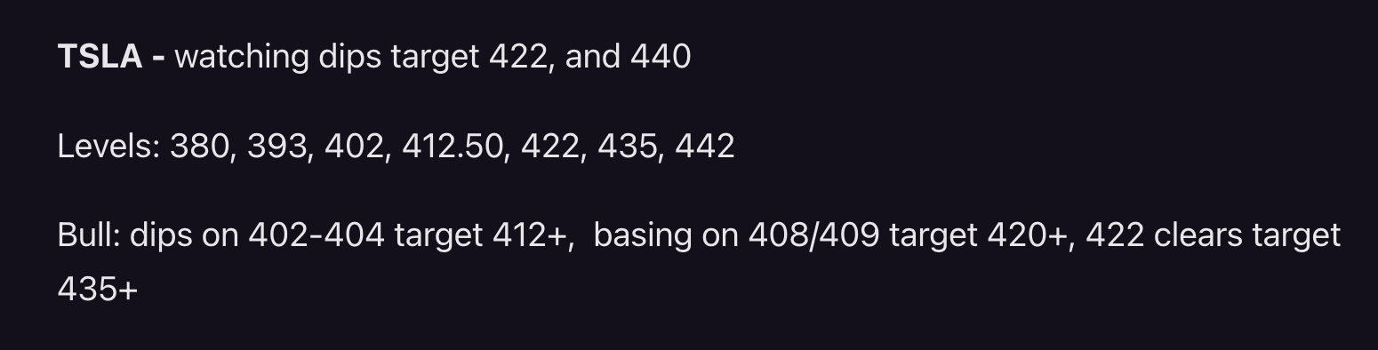 TSLA - Did exactly as predict dipped 402-404 buy zone and rant to 422 level!