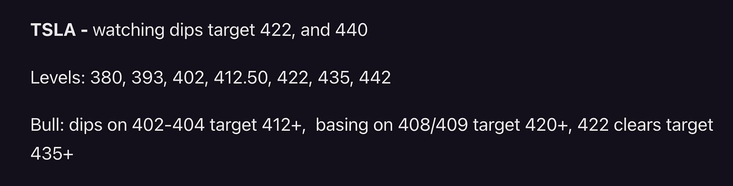 TSLA - Hit 432 overnight and back at yesterday’s close