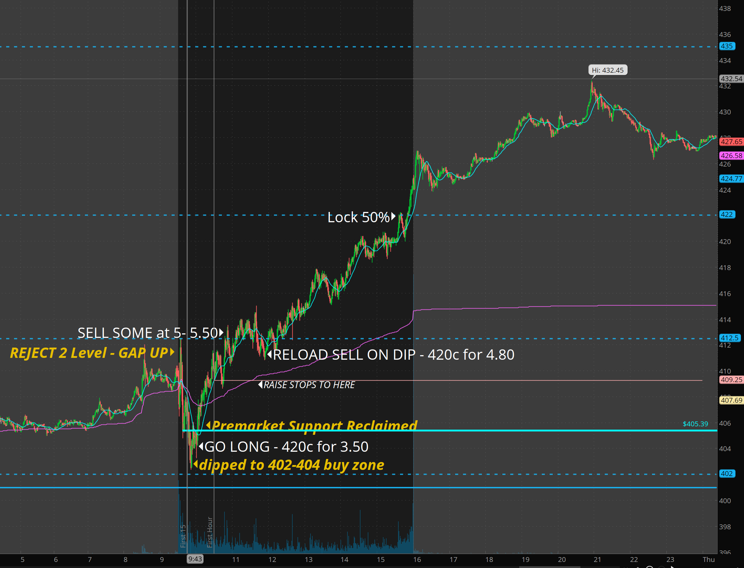 Notice the use of bull puts after support held and bear calls in late afternoon.