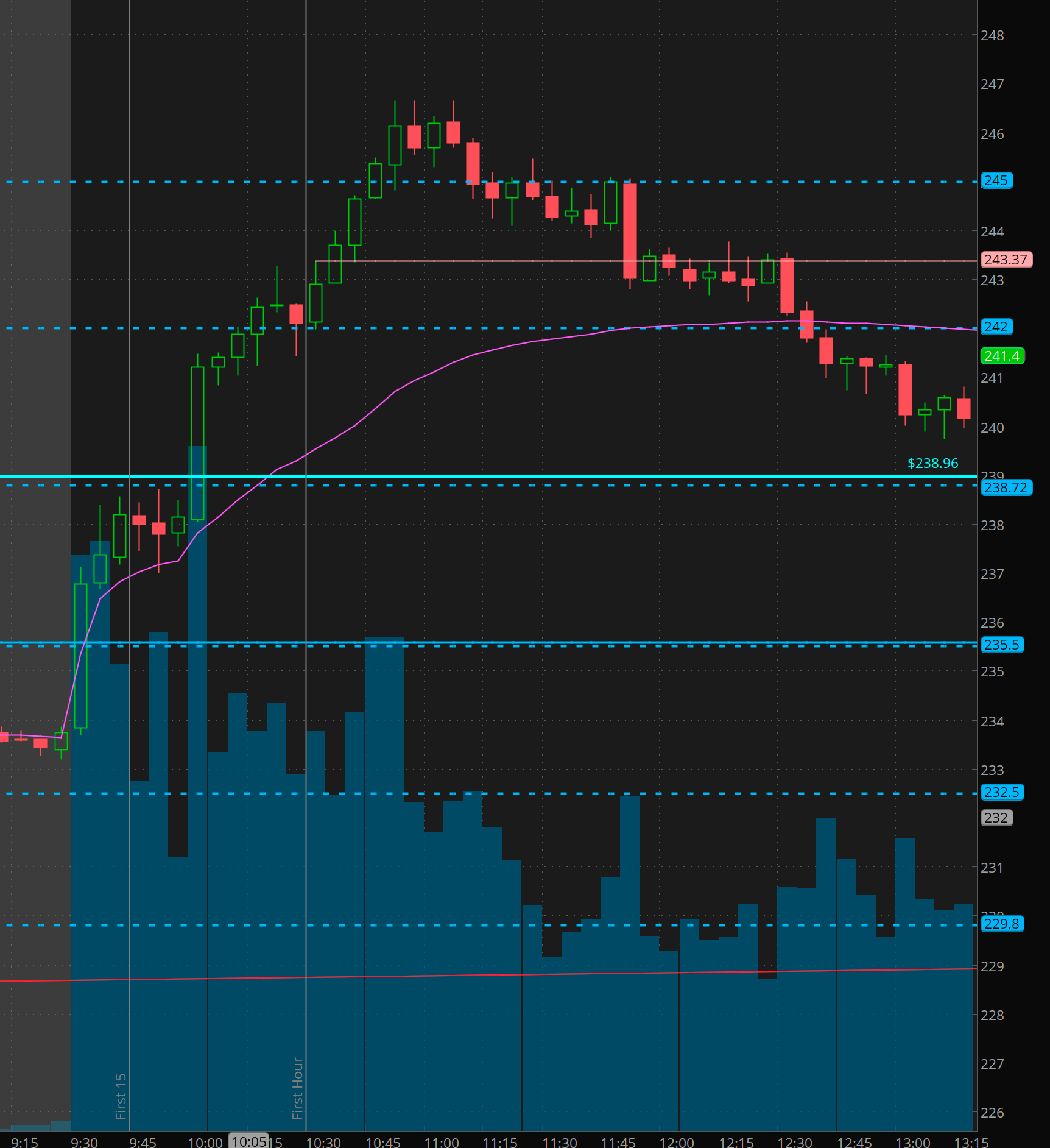 My original plan was to get short if 235 rejected. We ripped right through it, at the point I should have been looking for a long but I was stubborn on the thesis, and got short on 238.80 approach. then we dipped into vwap and held, and I tightened up stops. and got stopped flat. Then minutes later 10am JOLTS numbers came out triggering a short squeeze/rally and as soon as that hod cleared the grind was on. In theory if today holds, we should see 250+ by Friday. If 237 doesn’t hold then the move yesterday was in face a squeeze.