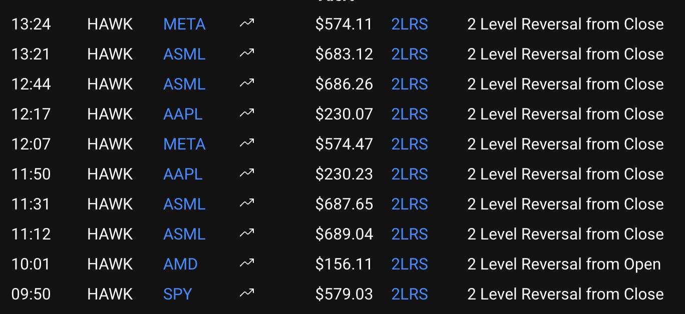 Not bad! ASML was the questionable alerts, but did give small bounces near the alerts but sell trend was strong. The only big issue, is that it should have signalled SMCI short at 50.20, and I’ve looked into the logs for why it didn’t. It was missing one criteria. I need to rethink my logic for the reversals and if that criteria is a must have or not. and if not what other criteria can it use. I want very few alerts with over 70-80% winners. I’ll keep at it.