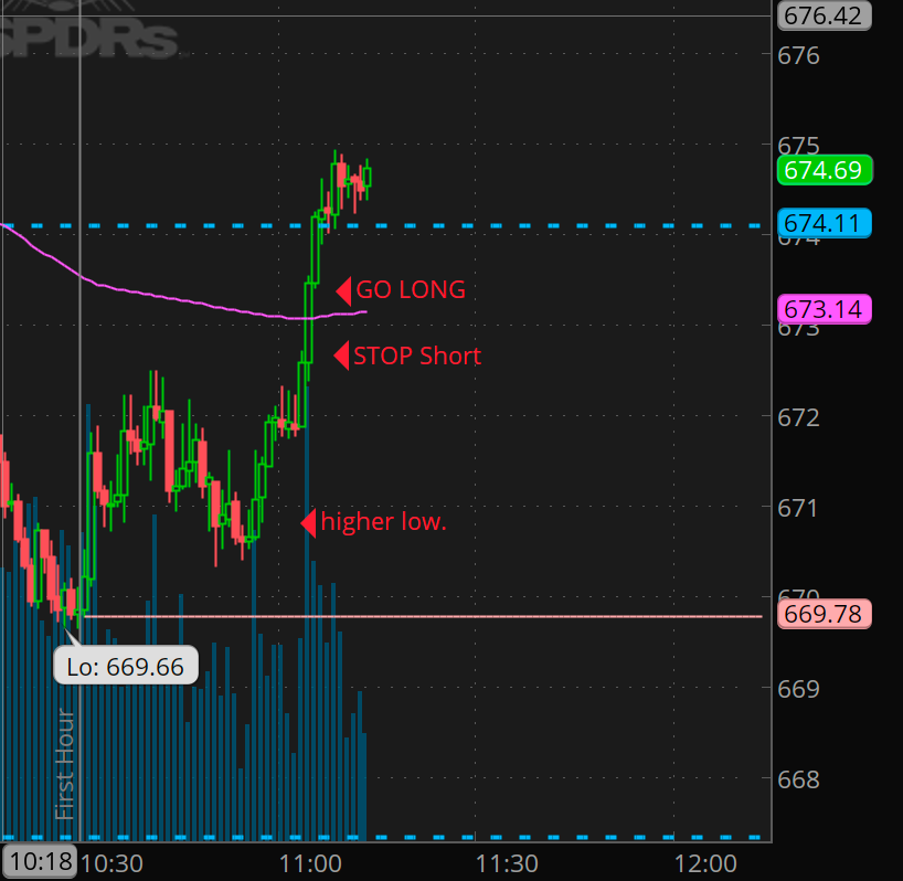 I was planning long in the morning.. but the market dipped more than expected and I gave it a chance to flush. Ended up having a little chop in first our BUT we got a 10:30am reversal and reclaim of that key 674 level to go long Triple SIZE!!!