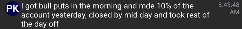 And that paid. Congrats to member PK who grew is account 10% in one day!
