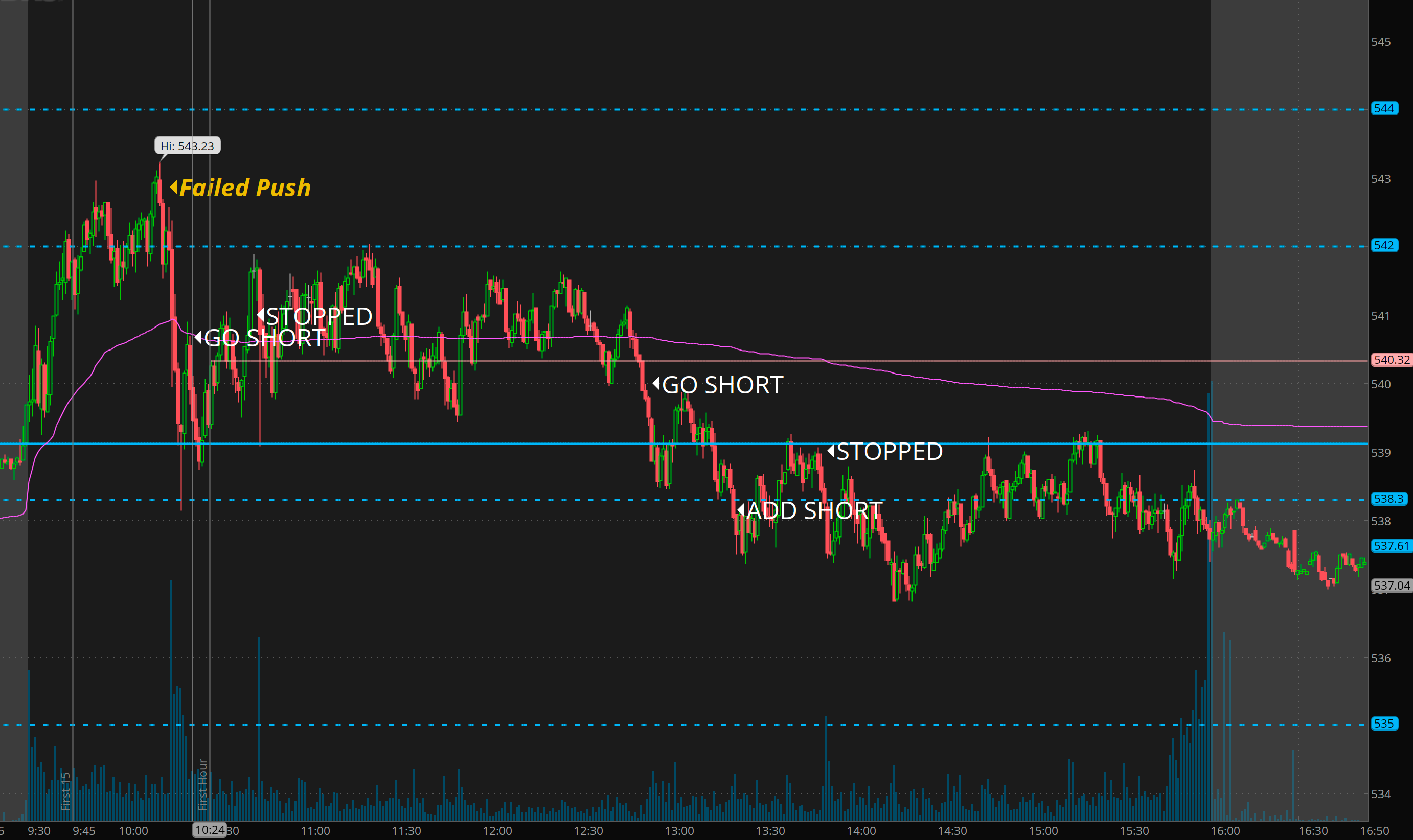 What a waste of a day and capital. At least that what it feels like. But bottom line this is part of the business. The only thing I could have done differently on the 542 consolidation, and vwap break is to take 5430 bear calls.