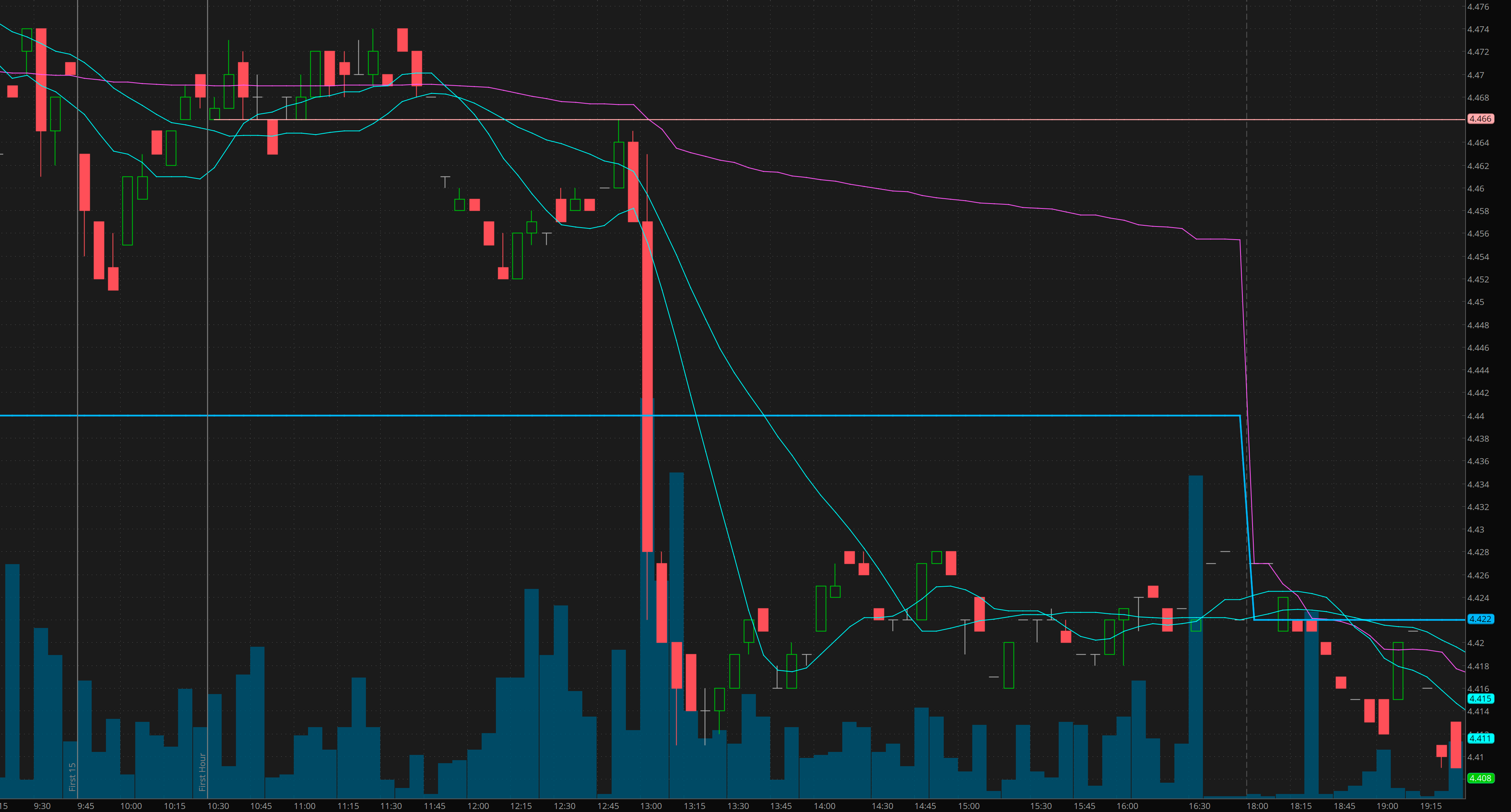 So after the initial move there was consolidation through lunch and then a low volume rally into the last hour. So what happened at 1pm yesterday? It was the bond auction and there was healthy buying meaning investors were not demanding higher rates.