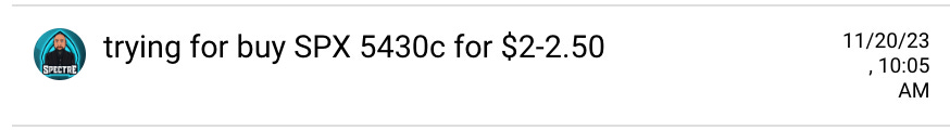 It was a nice stress free trade. I also shared a plan to scoop SPX 4530c for 2.50 when it was around $5, targeting 20+. It dipped to 2.75 and then ran to $27. (had a typo in my rush… 5430 lol.)