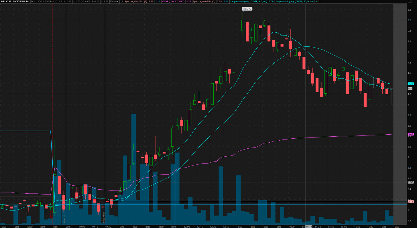 NFLX was on my radar for possible breakout continuation. Once I saw 469/470 clear at the open, I knew I wanted to get long.