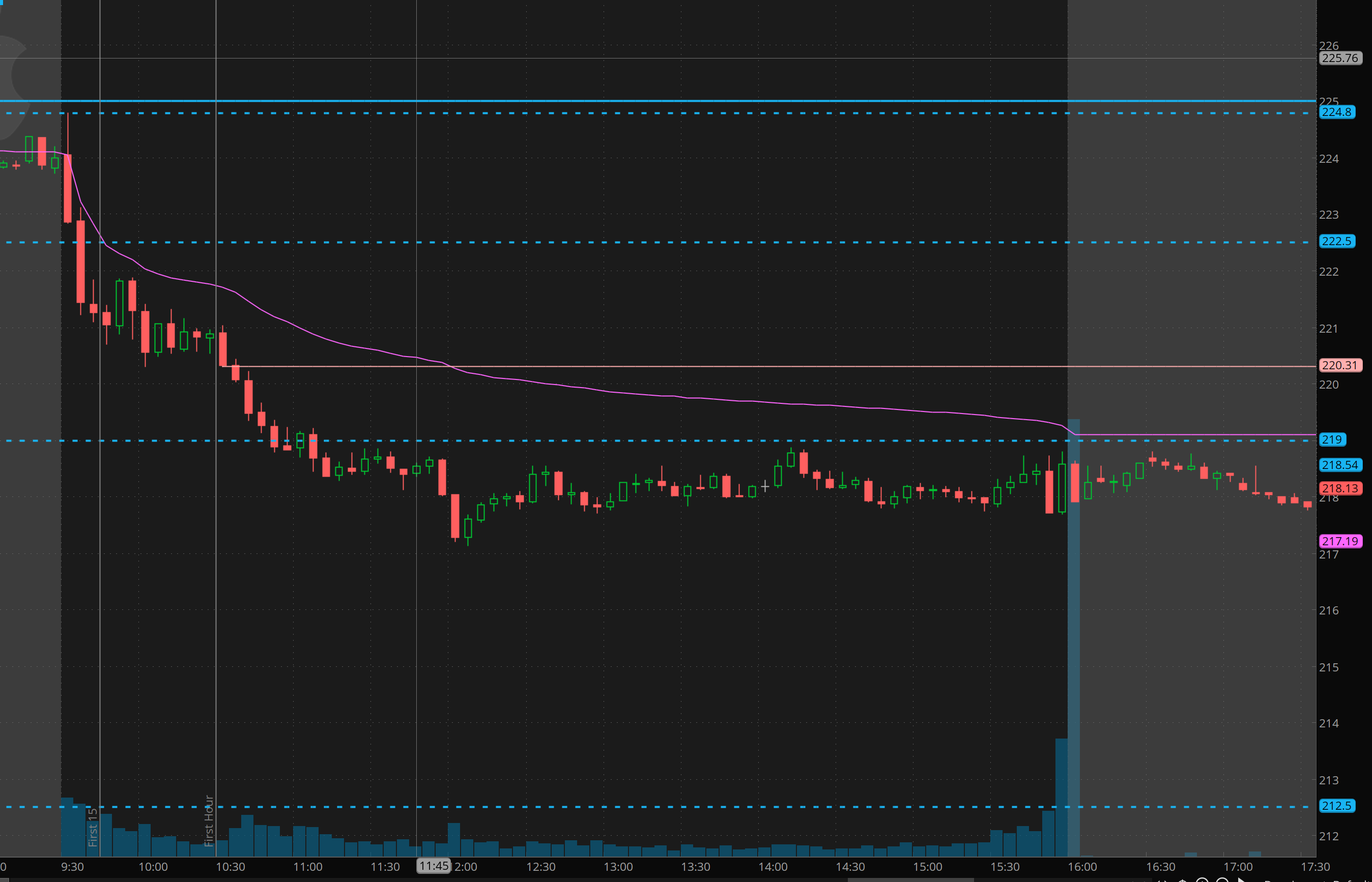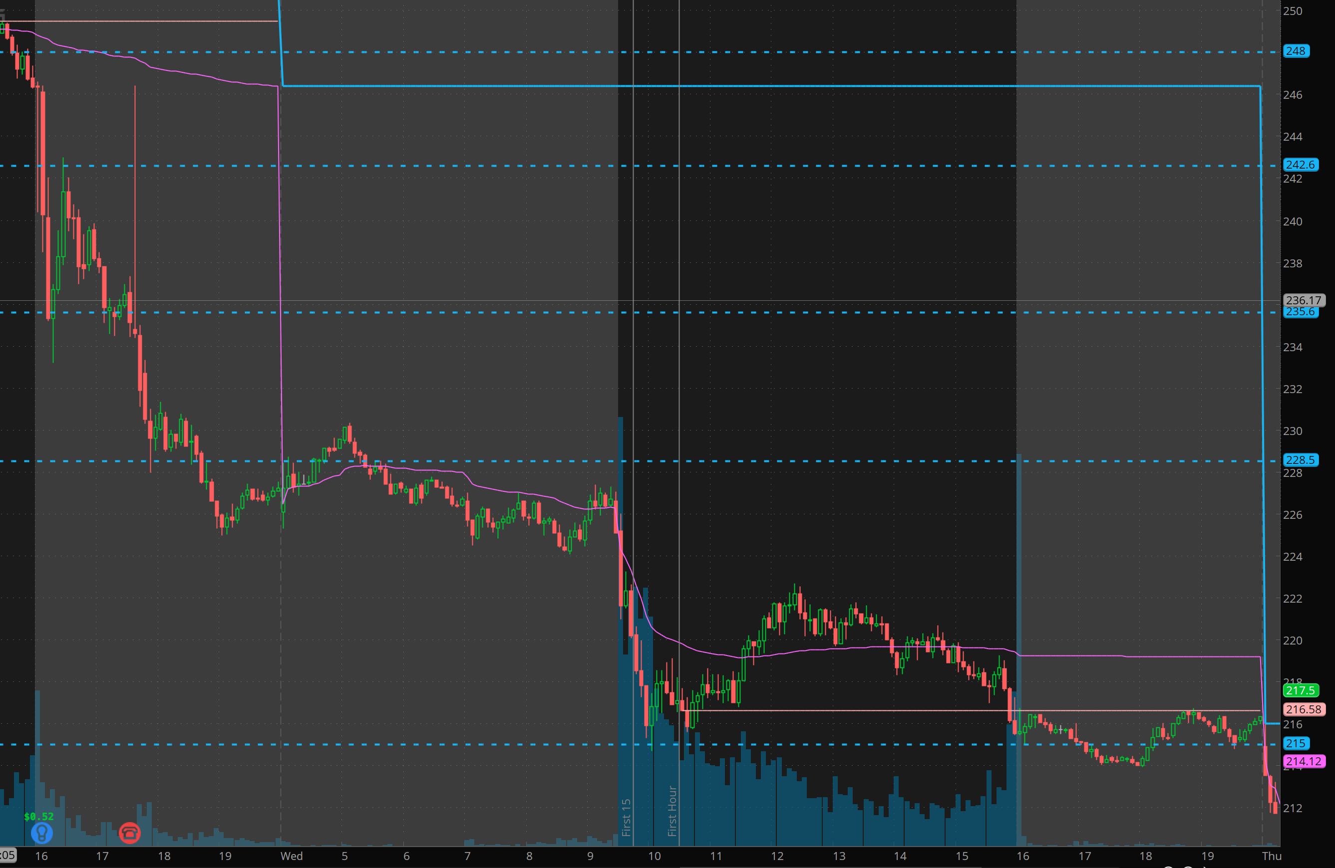 In after hours on Tuesday, I alerted to THT PRO members short commons on TSLA 240 stops 245 with target of 220 or less. By the open TSLA was at 225, we took 215 and 220p in the room with TSLA hitting the 215 level precisely before bouncing. I also then alert I was looking for rejections at 222 for reload short which is precisely where TSLA rejected before heading lower!