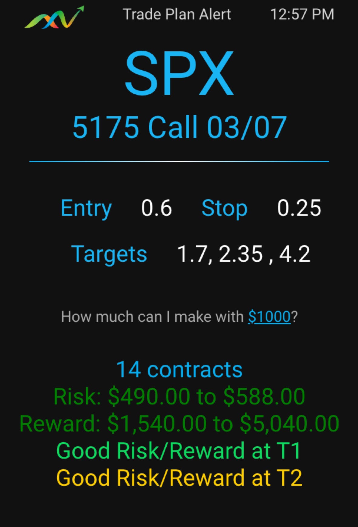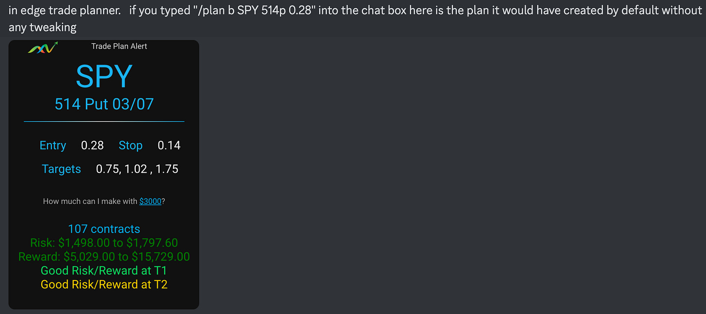 I showed RJ how to use Edge to plan trades and today I saw his alert and loved the plan.