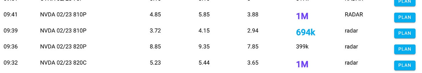 Feb 23 - NVDA 820c Entry 2.25 (swing from Thursday) - High after $25.00 ($2250 → $25000 potential)