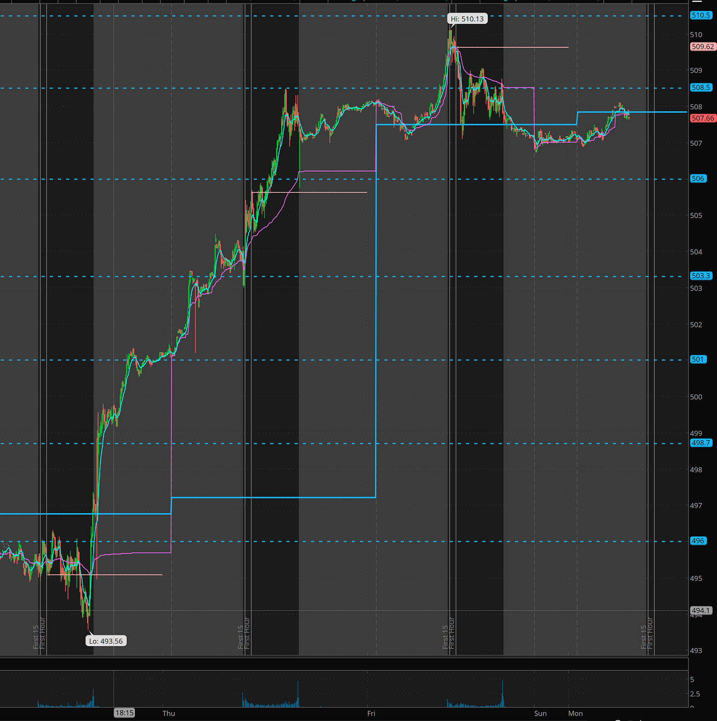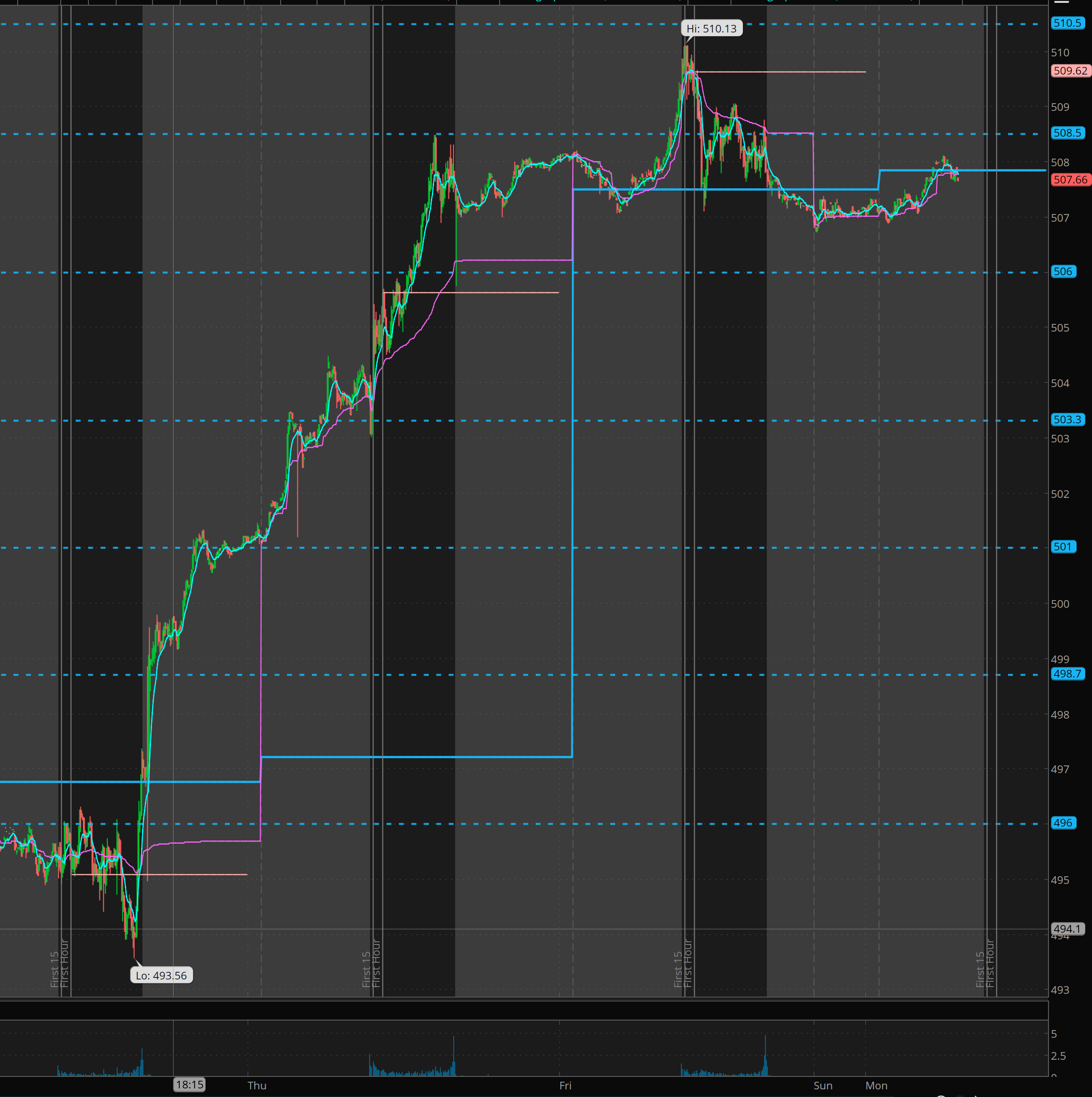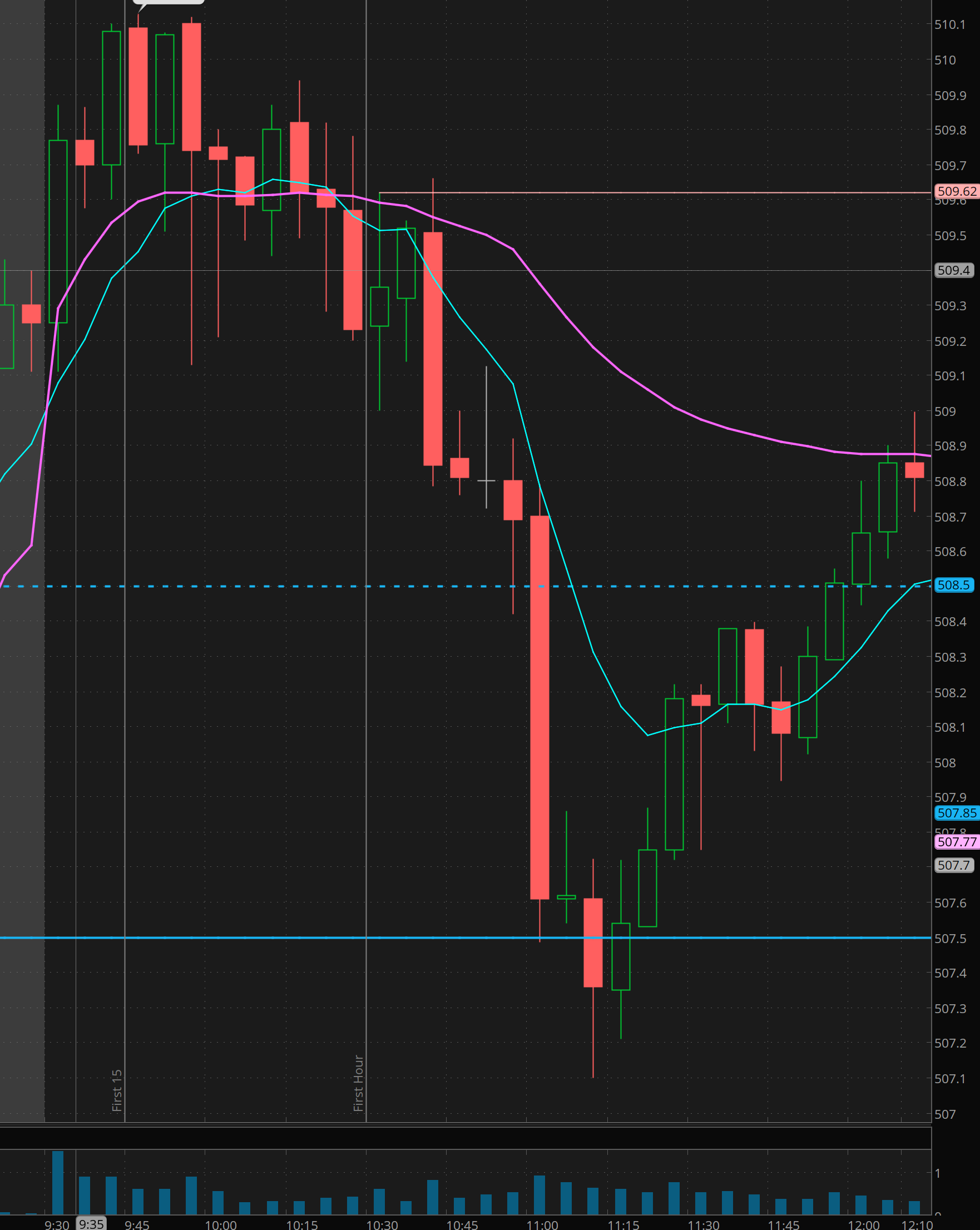 After the dip and rip from Wednesday, I was was targeting 510.50 for the short. Unfortunately we only got to 510.13.