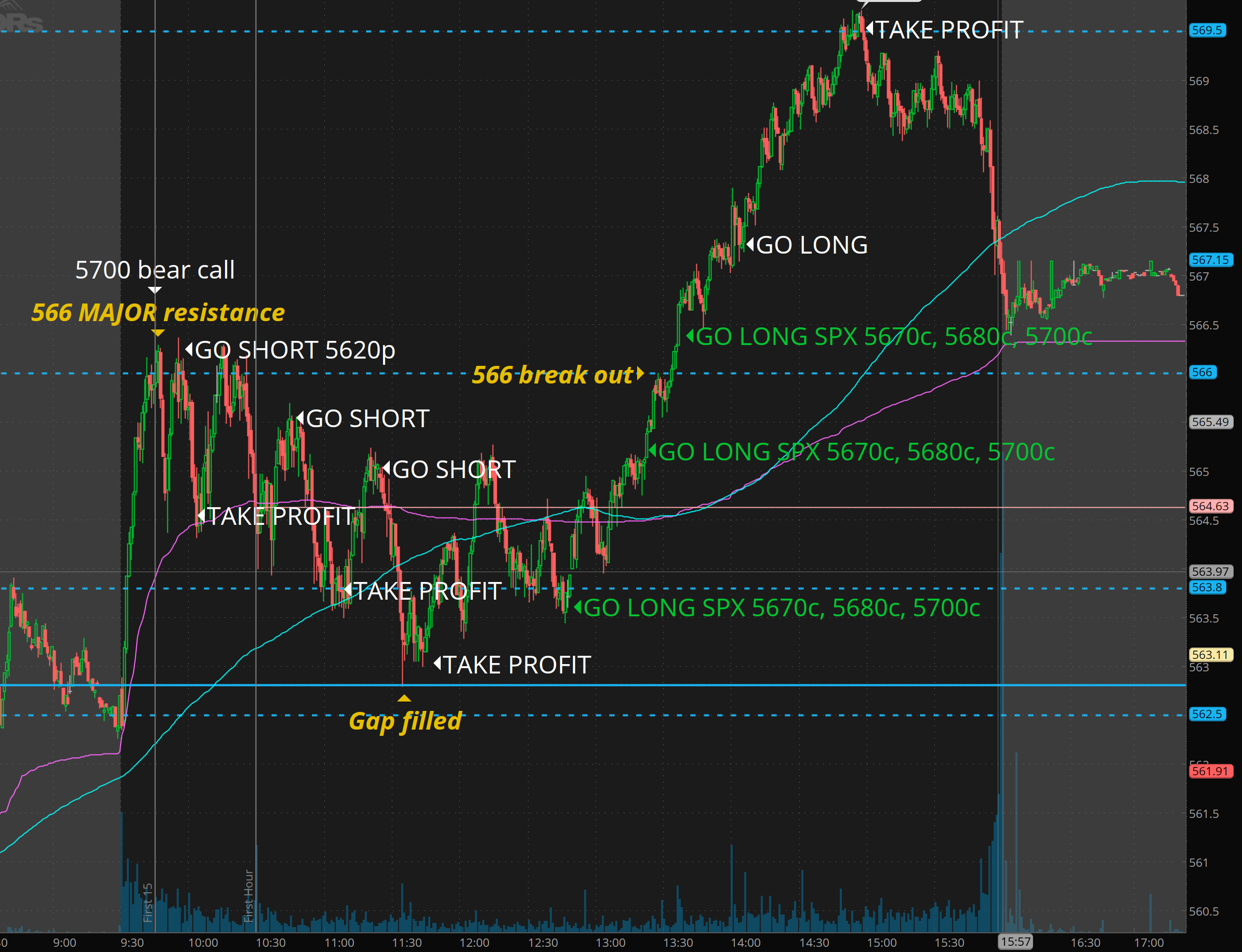 For me this was high confidence trade. I HATE chasing, but this was the trade I was waiting for. I ended up taking 5690c for 9 stops at 7. $2 of risk. with 5670 target being $30, 5680c target was 20+. and I got it yielding 5R. not the 1000% I wanted but I played according to the action, timing, and plan that was in front of me.