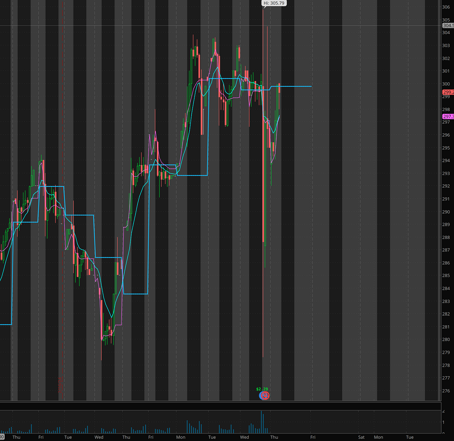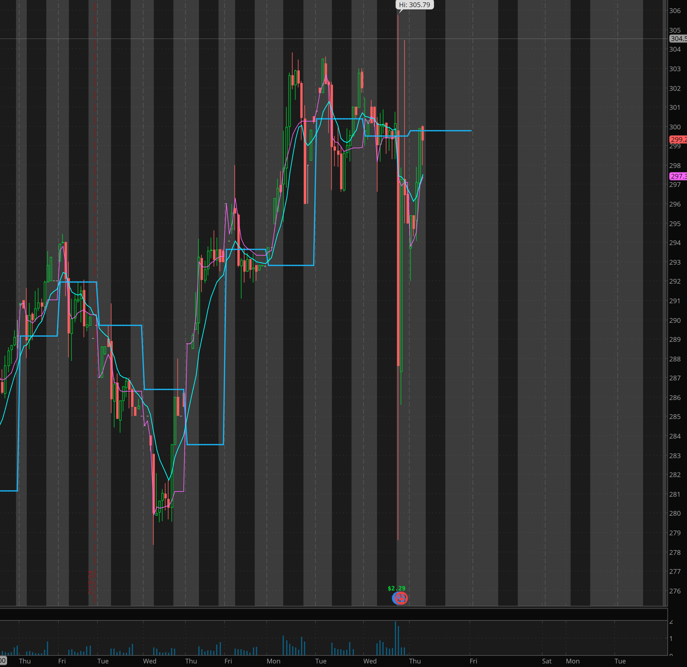 Mixed bag reaction to e/r. Depending on PCE and market trend I think CRM can go either way . Maybe long off 293 vs 290 break given raised PT of 345, but other banks raised PT to just 300.