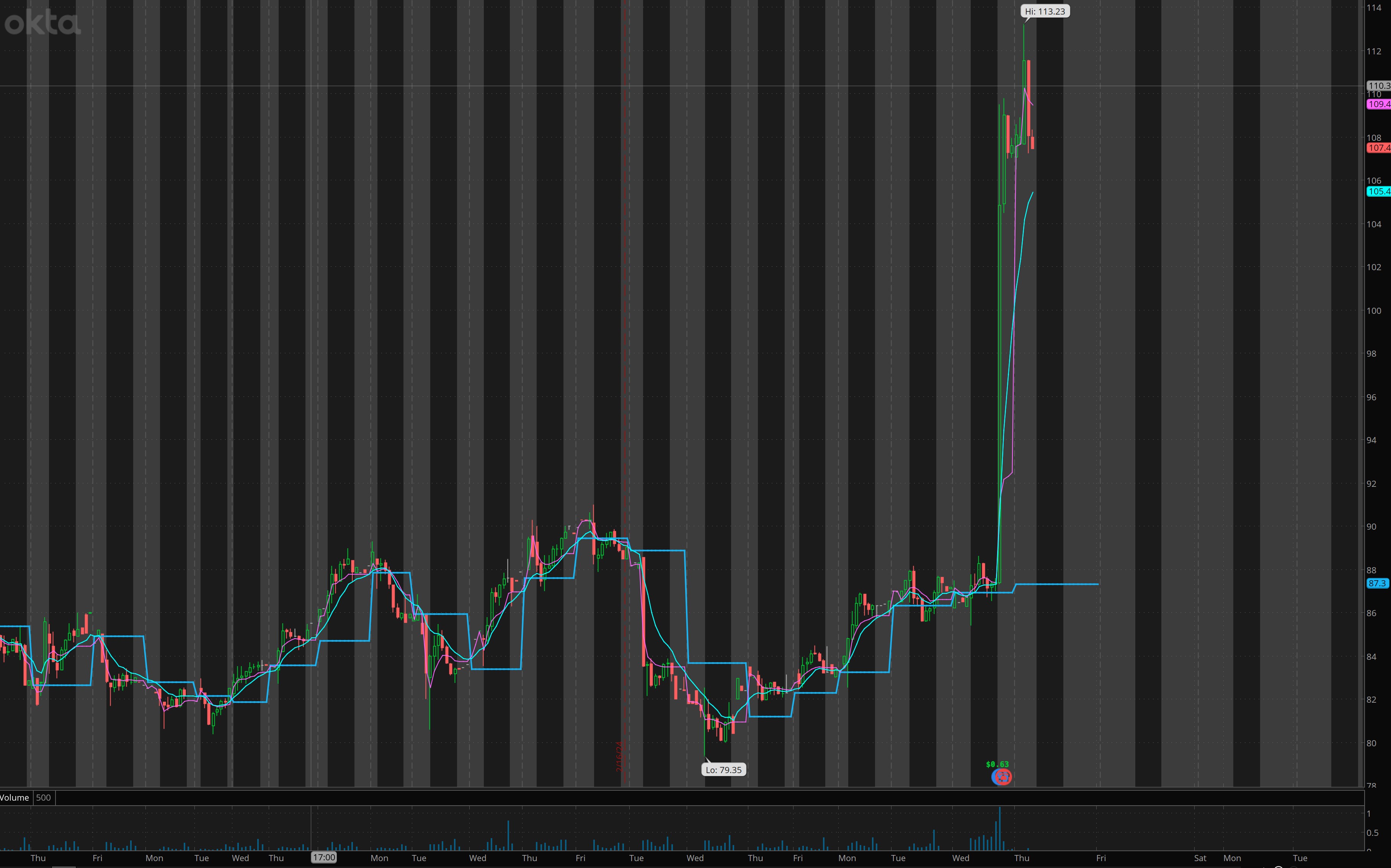 Nice move after profit numbers. if 110 can turn into support this could begin a multi-week breakout. Unfortunately the PT upgrade was only to 125 with all time highs over 200. Could be tricky to trade today.