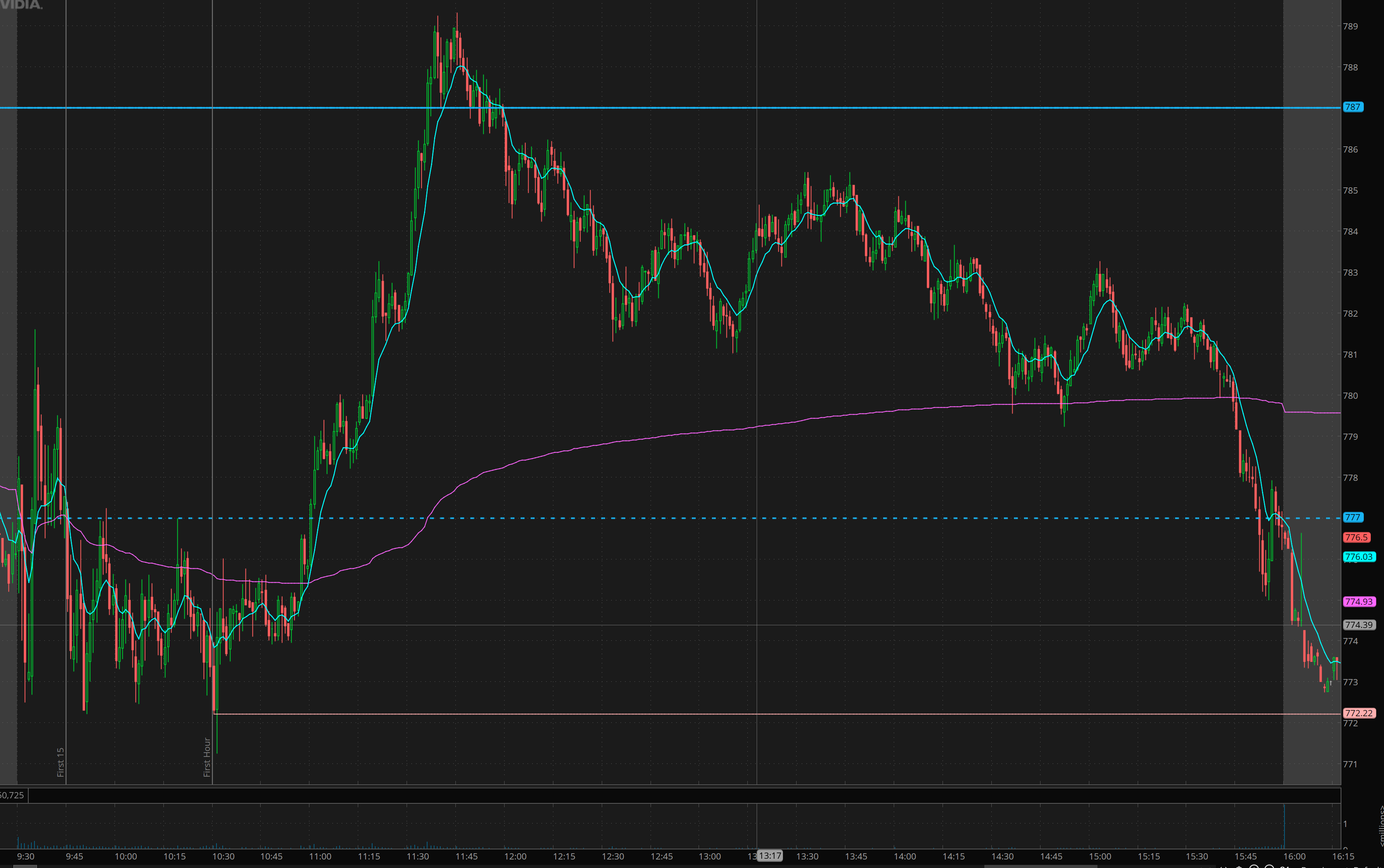 Waiting for the 787 level and then getting short provided a $4—> 7.50 opportunity on 770p, with most of the flush coming in last 30 minutes.