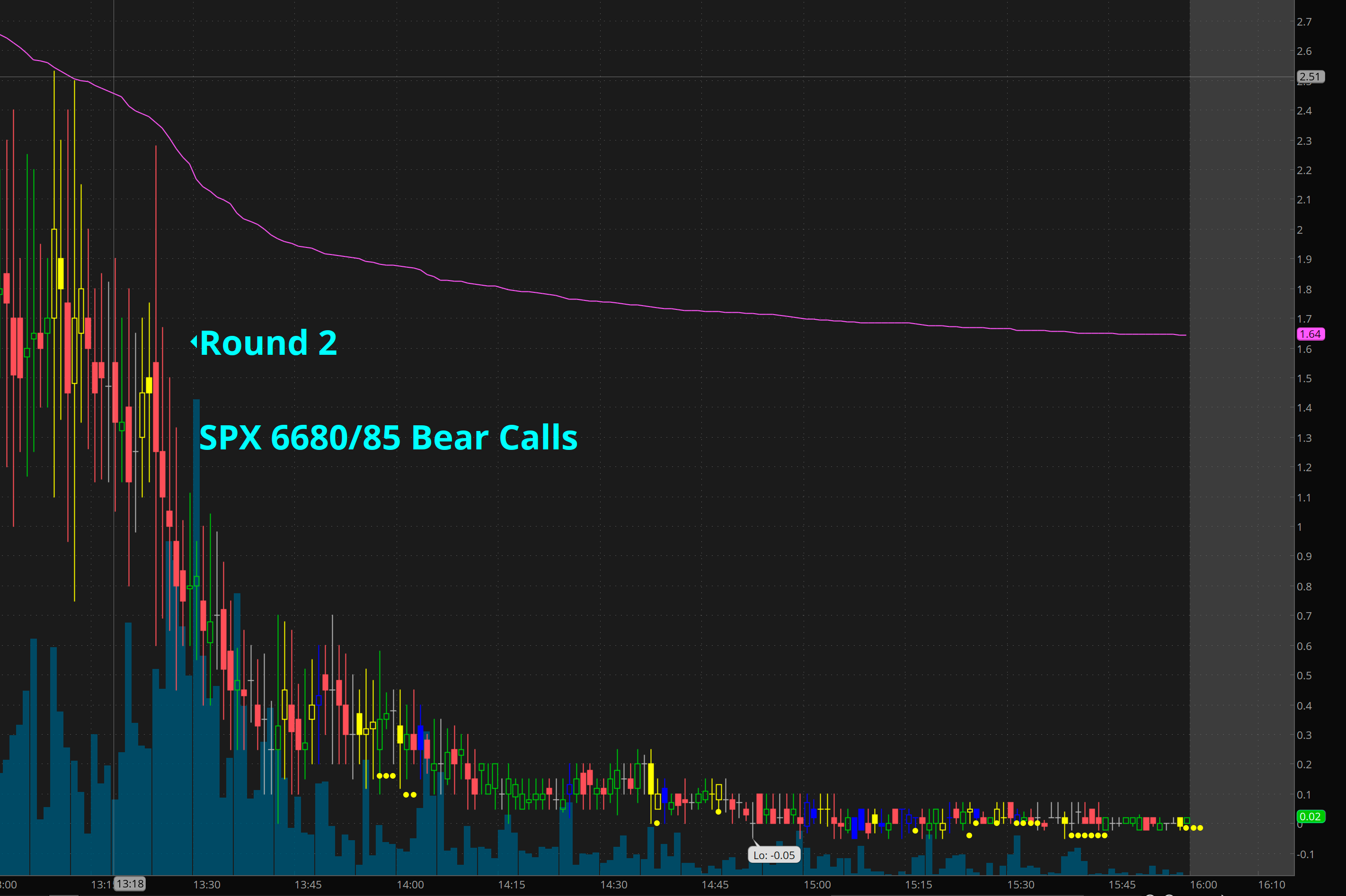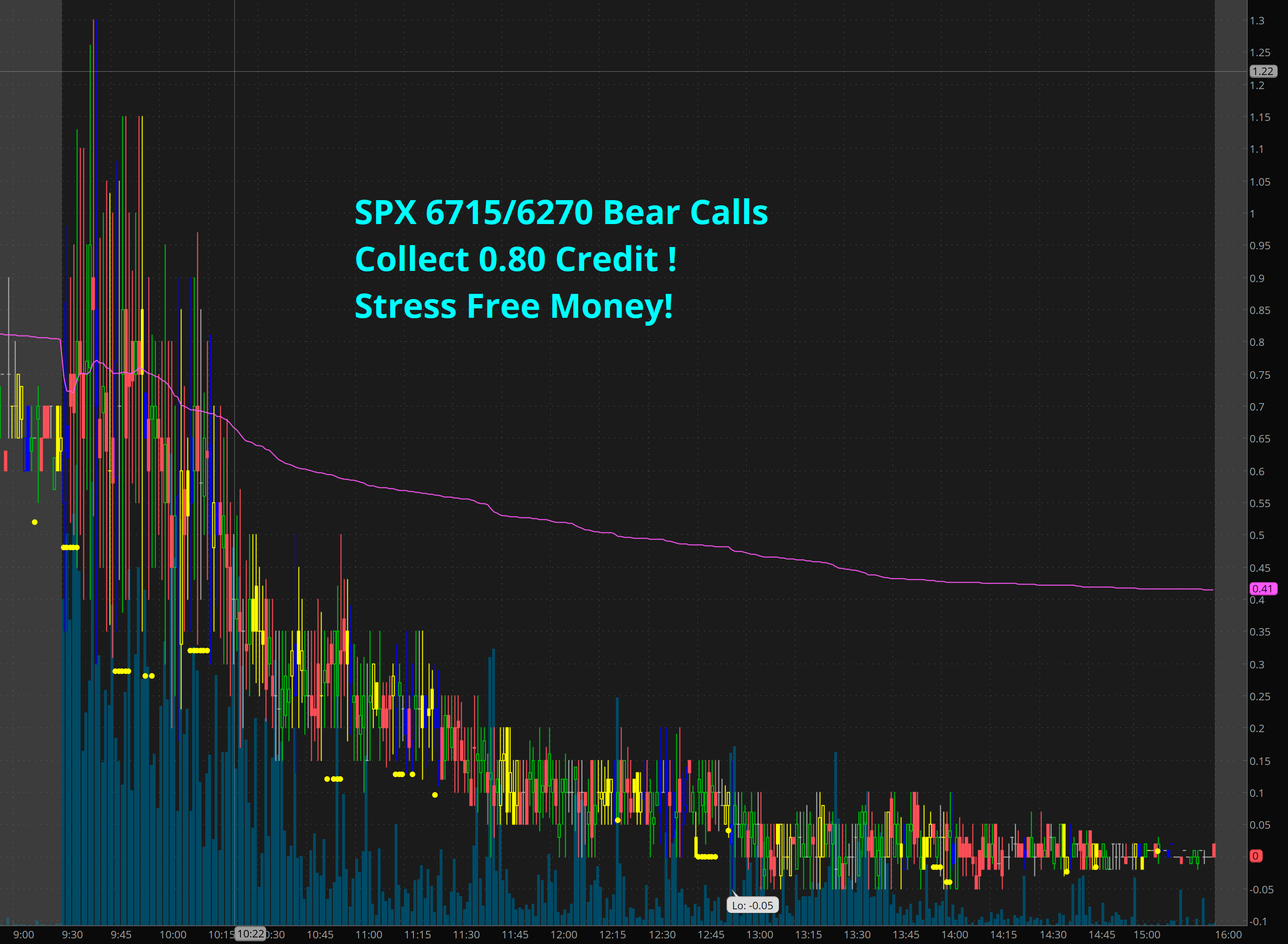 Given the bearish Idea I was prepared that if a sudden rip came I could add to my bear calls and I would be just fine and if just went sideways all day I would be fine too.