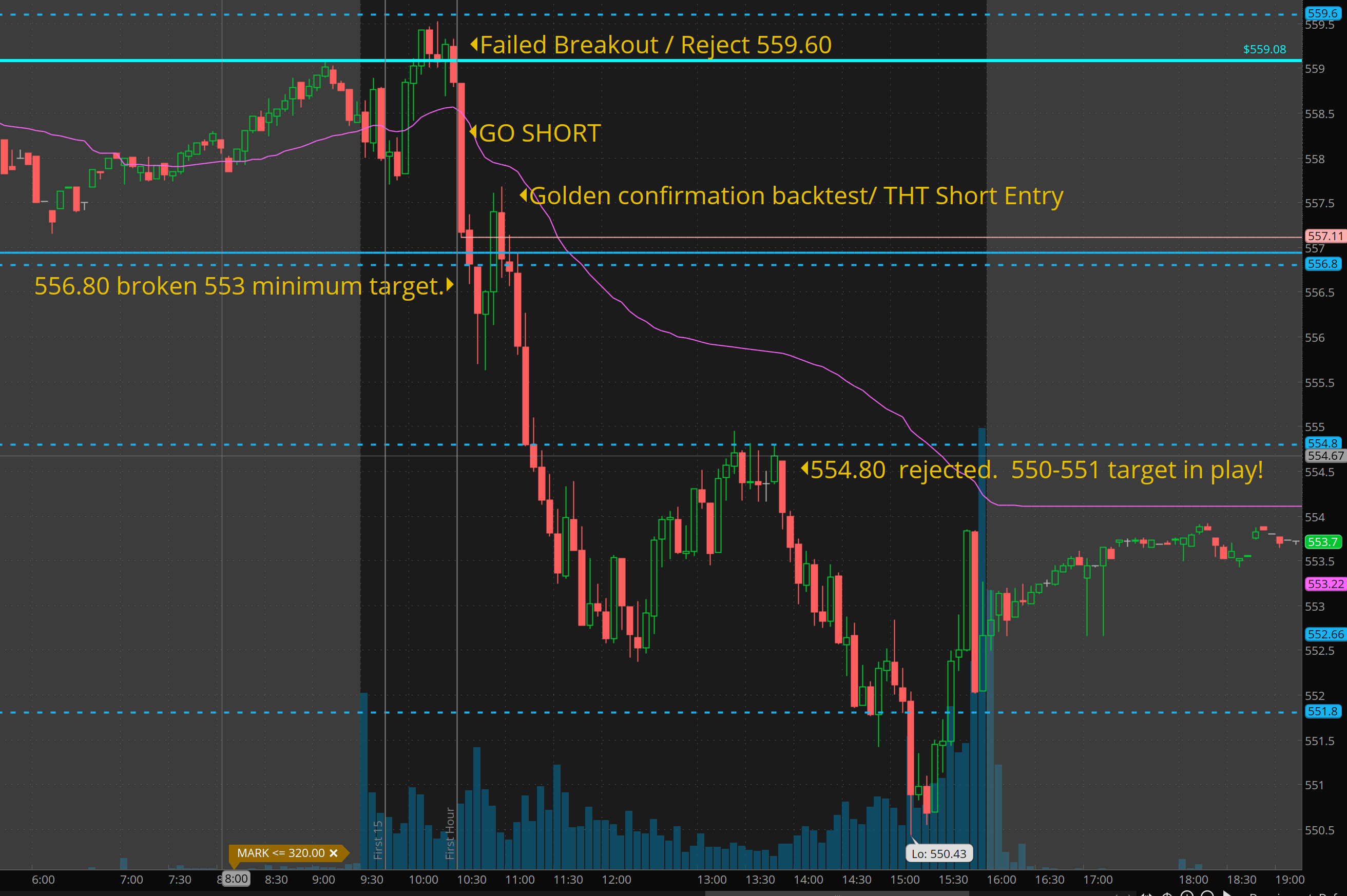 Trade 4: 554.80 double top rejection after lunch. I missed this as I was walking back from lunch but THT-PRO members knew what to do and got it.