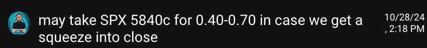 • Oct 22 - SPX 5850c $3 ran to $11 on Round 2 ($3000 → $11000 potential)