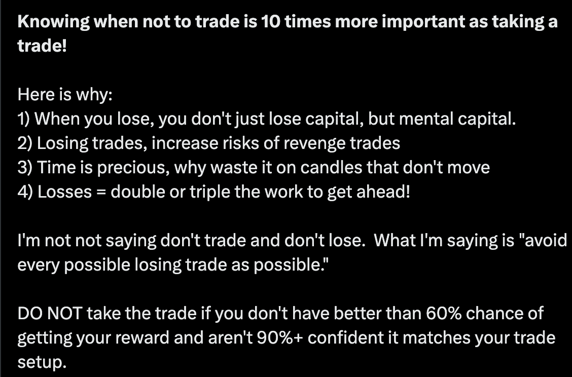 Stick to process. The process and trade setups I teach works. Rinse and repeat over and over again. There will be losses. Any good system will have them. Being systematic also means the gains will repeat and come again too. If you keep changing your system/process trying in an effort to never lose a trade, you will never get to where you want to go.