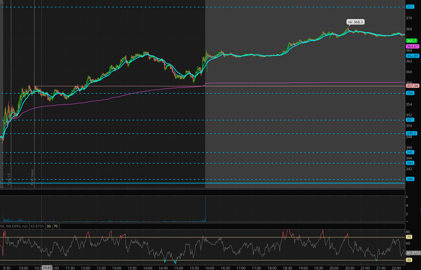 Everyone. my levels are magic! Notice the large gap between 356 and 372. We want to position into trades early to take advantage of those!