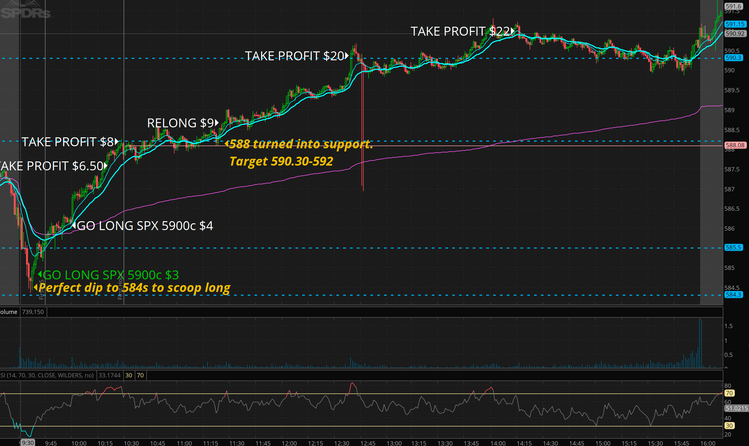 In yesterday’s blog I wrote I wanted to scoop look on a dip into 584s for a push beyond 588. We got just that!
