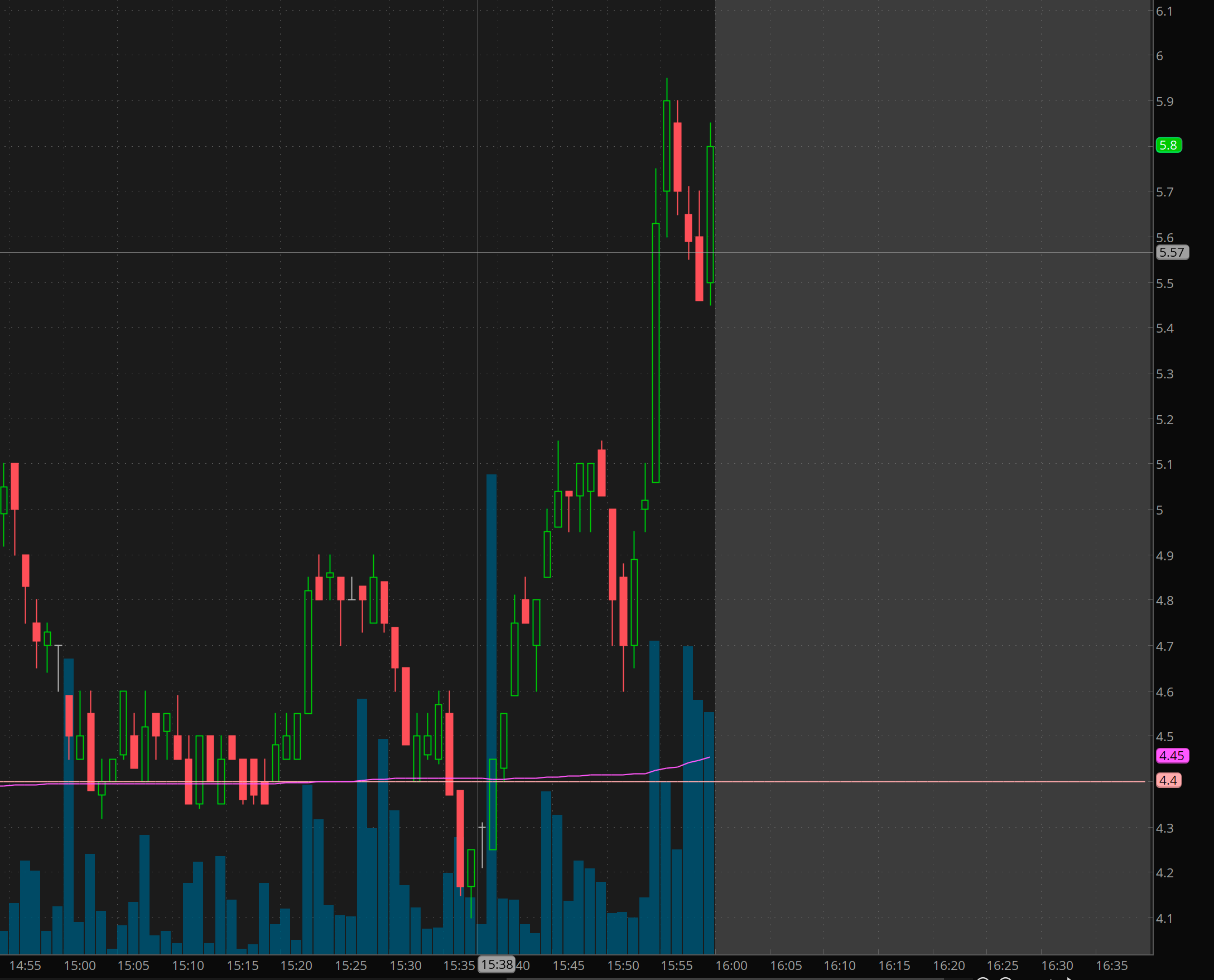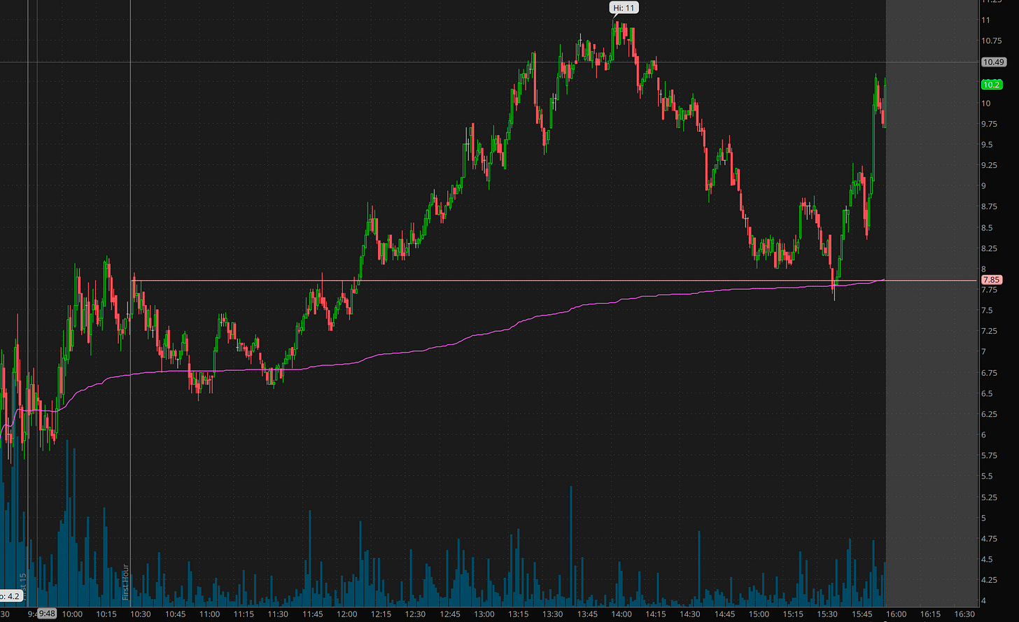 I locked in gains at the end of the first hour at $8. nice 100% gainer. Then I waited hoping for a vwap pull back to reload.. This never came. I