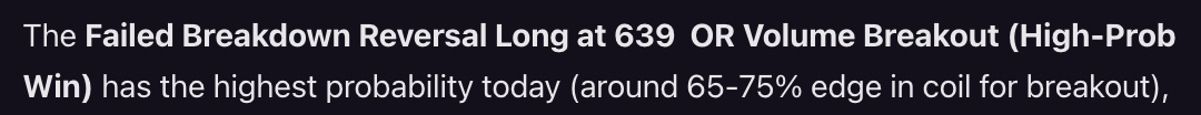 I will focus on failed breakdown/breakout reversals in the recent range (~633-646).