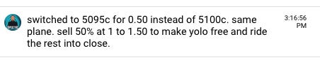 I also alerted 5100c for 0.30 and cut 90% off flat. Seeing the 5095c for 0.50 I had to take the chance because this was going to $5-$12. and I was worried at 5100c might only get to $1.20 if market only reaches 5100.