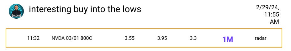 Check that dip buy that they did. I mentioned this in chat and later went on to say that NVDA is setting up for 800+ into Friday which is playing out.