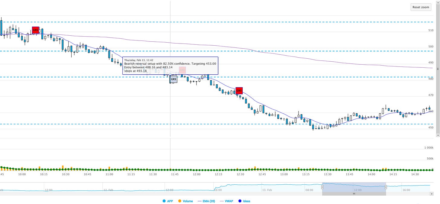 Playbook scanner nailed it! This is my textbook Gap Reversal Setup playbook. Not only did it catch the first short setup at the highs targeting 482. when 492 started failing it also planned the drop to 453!!!!