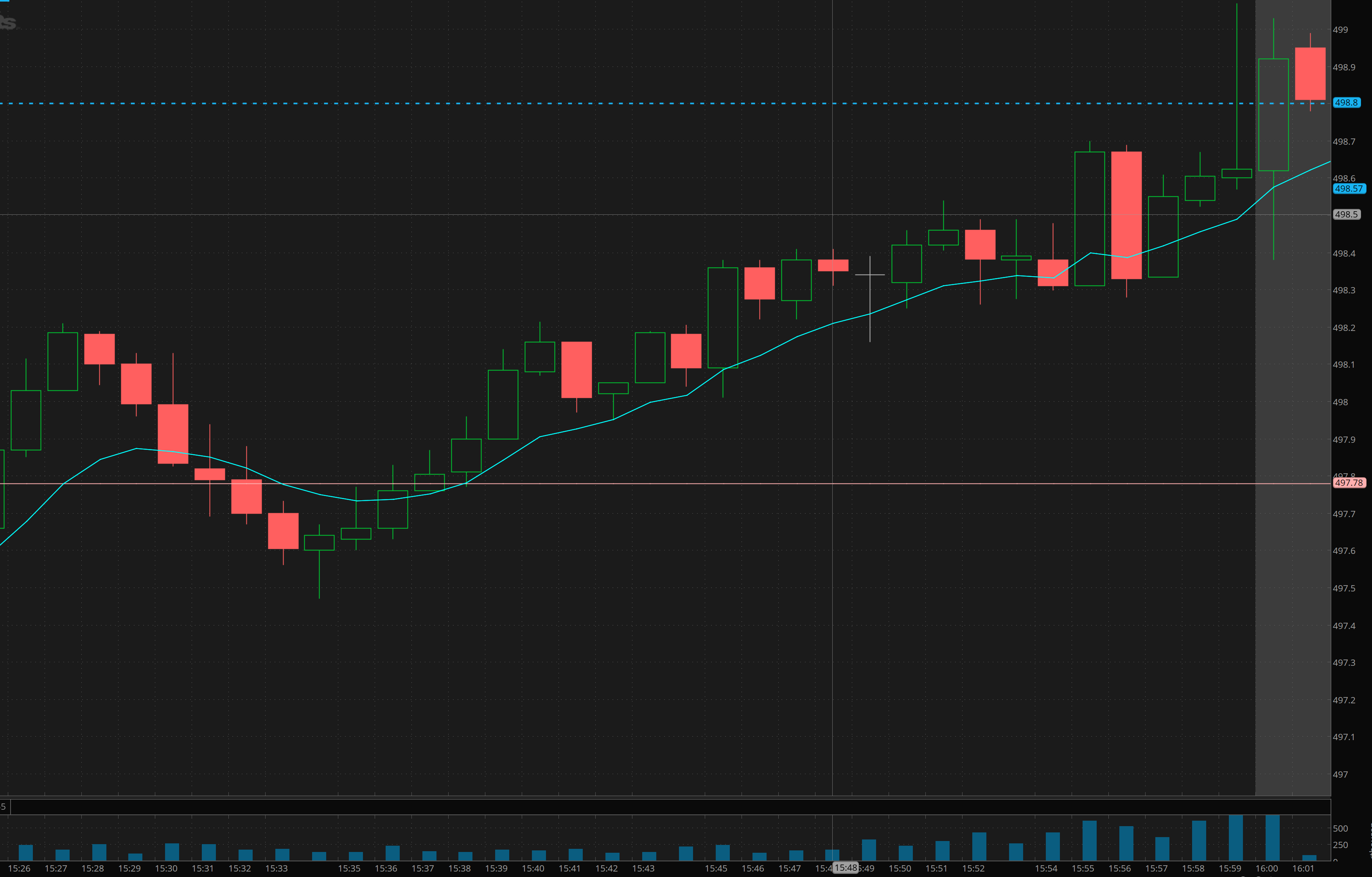 I tried to get long after I saw basing on vwap for a scalp toward 498.80 but couldn’t get filled at the price I wanted.