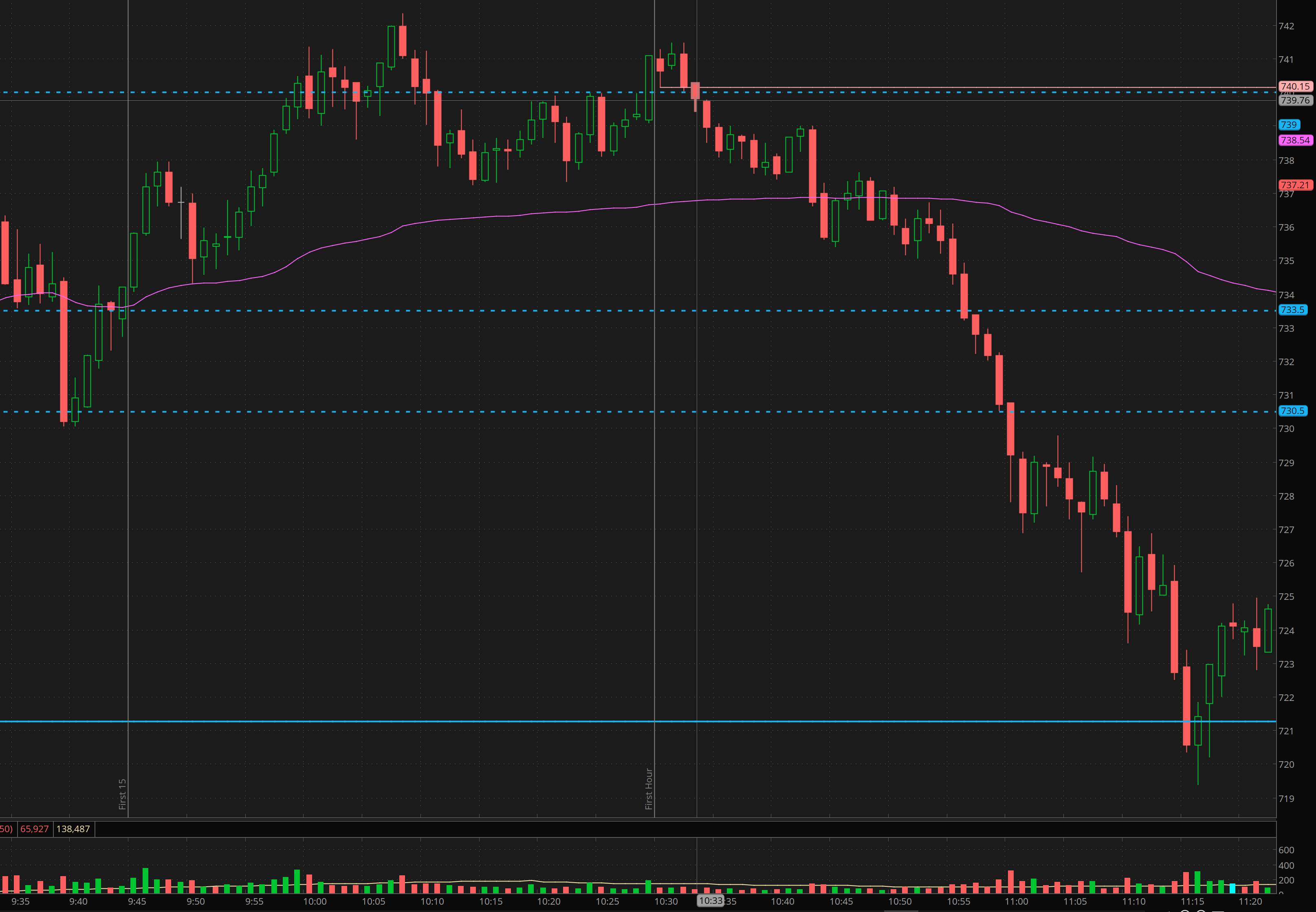 And here is what happened. It flushed right to 720 for the exit and flip back long for a swing for 750.
