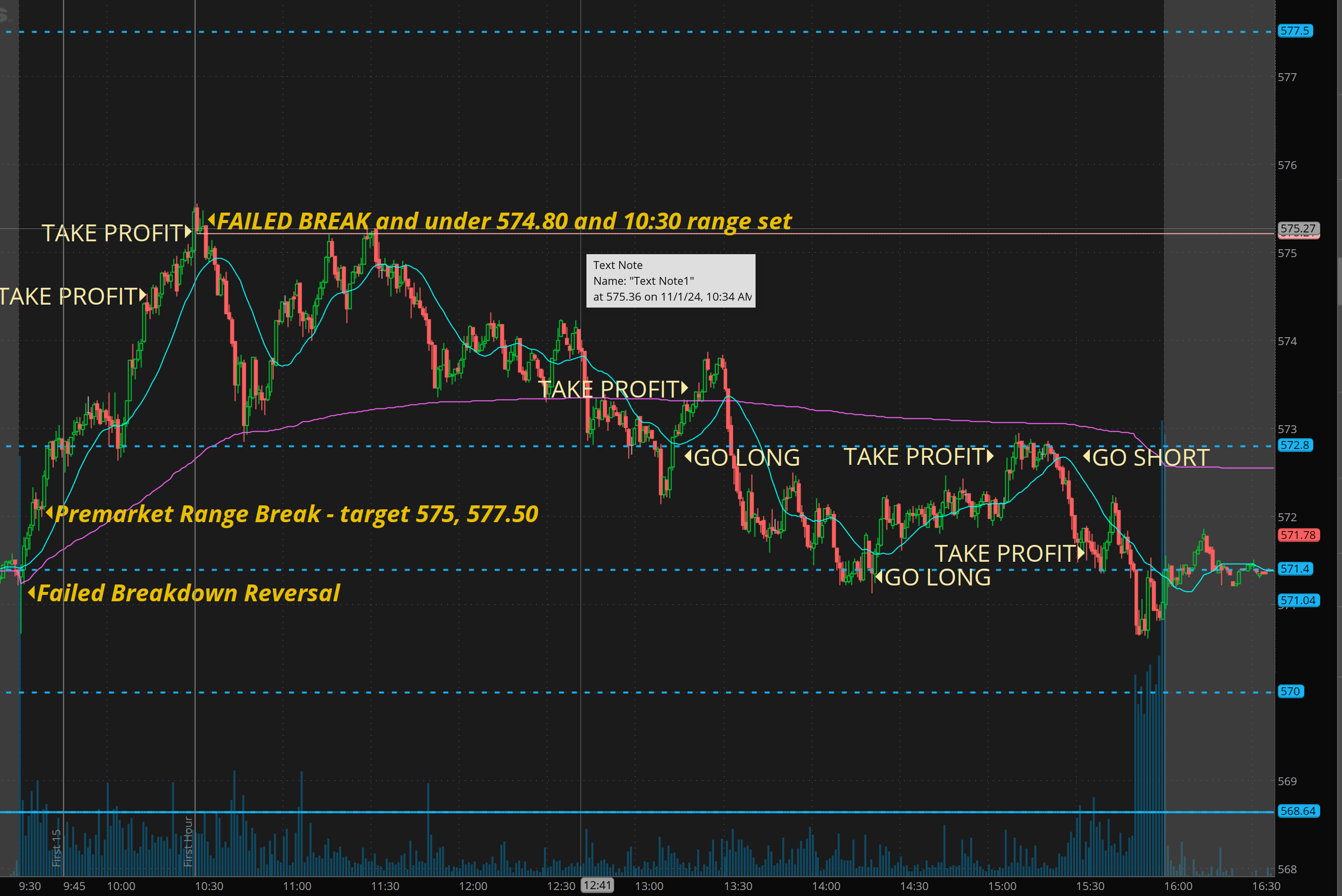 Will SPY test break 571 again ahead of tomorrow's elections? - Trade ideas for Monday Nov 4, 2024