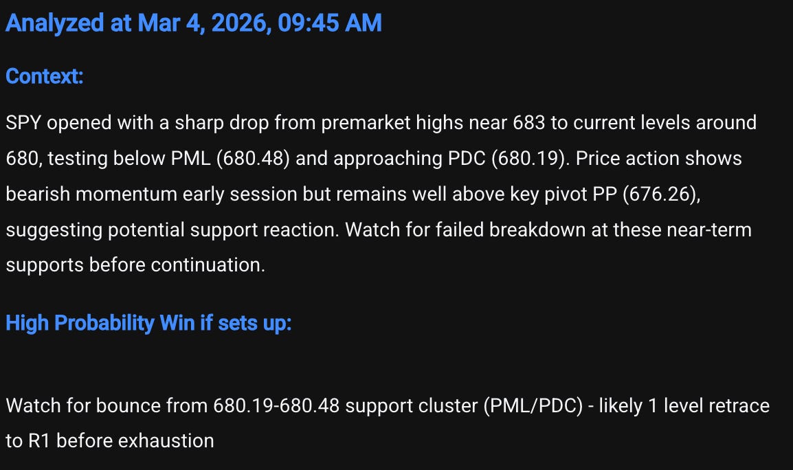 One hour of action and all day consolidation -- What does it mean? Spectre AI nailed the reversal long off 680!
